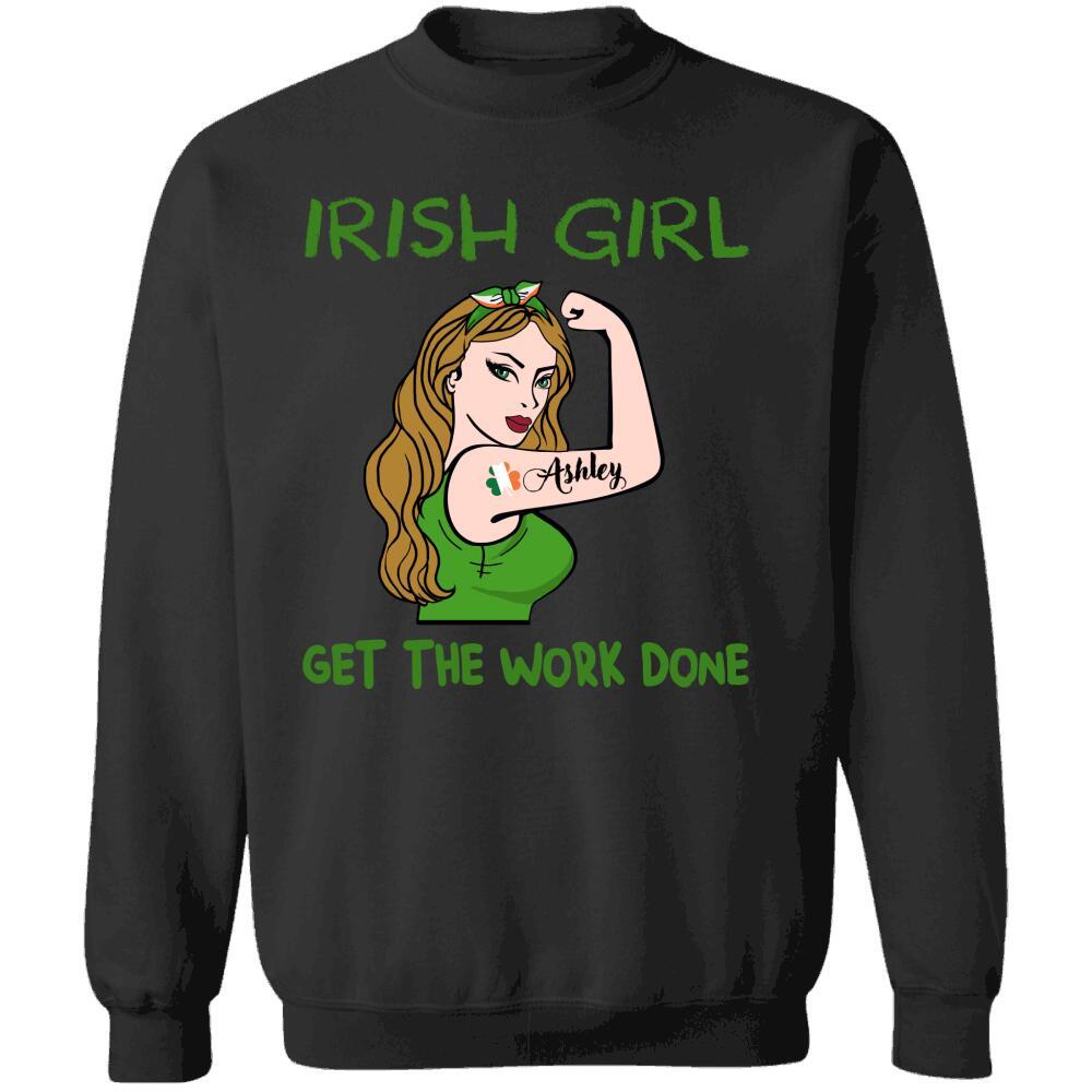 Irish Girl Strong Woman St Patrick Day Shamrock Custom Name & Looks Personalized T-shirt Hoodie