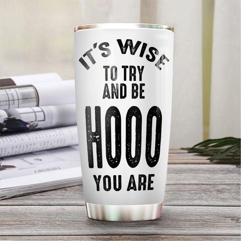 It Is Wise To Try And Be Hooo You Are Owl Pattern Owl Typography Stainless Steel Tumbler, Personalized Tumblers, Tumbler Cups, Custom Tumblers