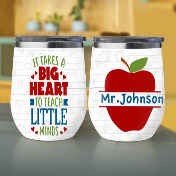 It Takes A Big Heart To Teach Little Minds Gift For Teacher Back To School Custom Name Personalized Wine Tumbler