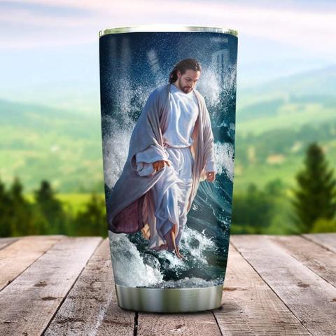 Jesus Faith Waves Never Alone Personalized Kd2 Stainless Steel Tumbler, Personalized Tumblers, Tumbler Cups, Custom Tumblers