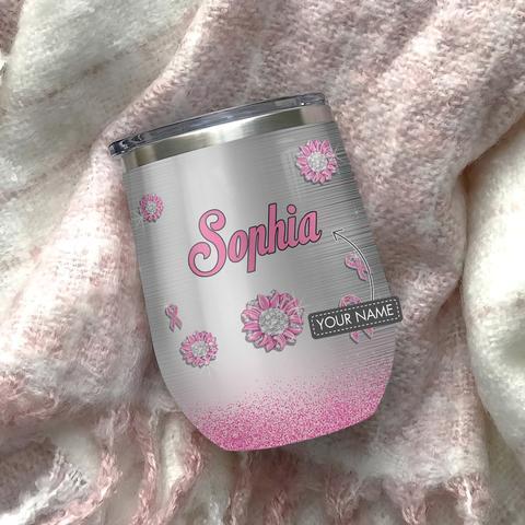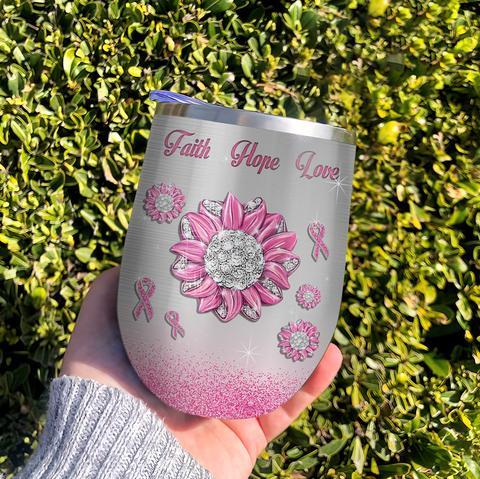 Jewelry Daisy Faith Hope Love Breast Cancer Personalized Wine Tumbler, Personalized Tumblers, Tumbler Cups, Custom Tumblers