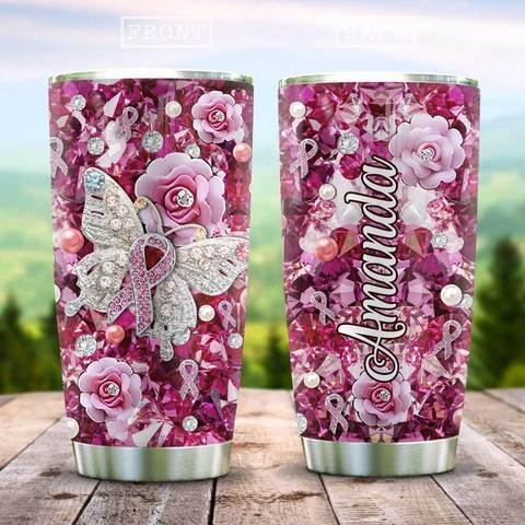 Jewelry Style Breast Cancer Personalized Kd2 Stainless Steel Tumbler, Personalized Tumblers, Tumbler Cups, Custom Tumblers