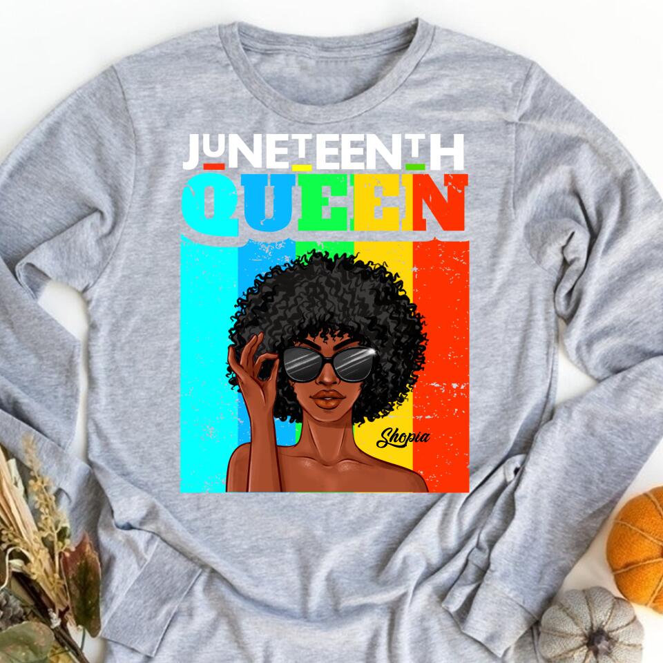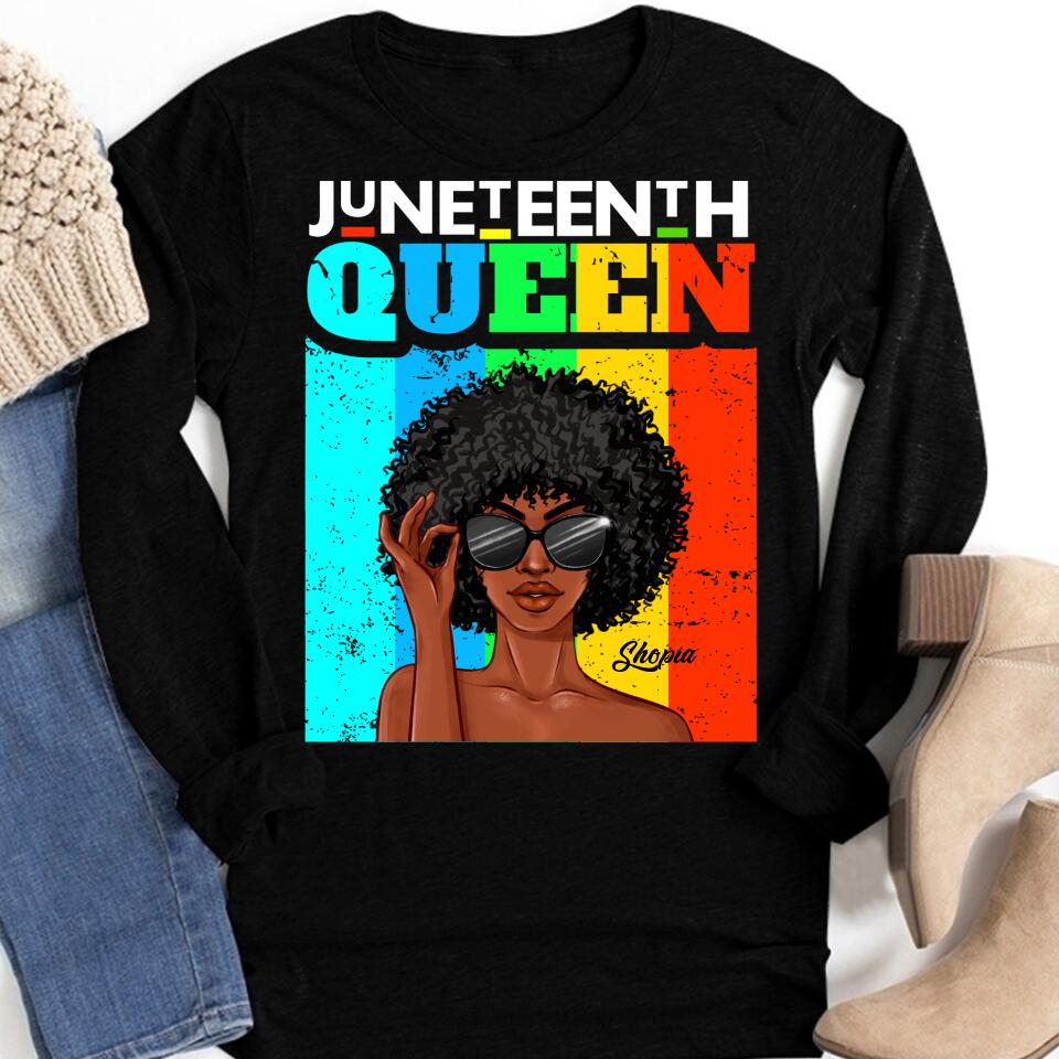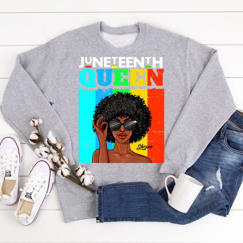 Juneteenth Shirt, Custom Juneteenth Shirt, Juneteenth Queen Afro Melanin Black Girl Magic Women Girls T-Shirt