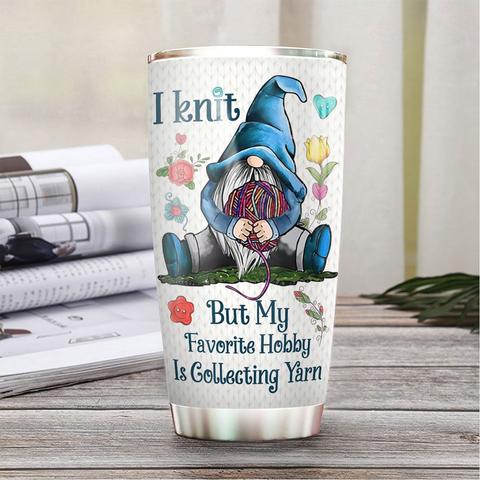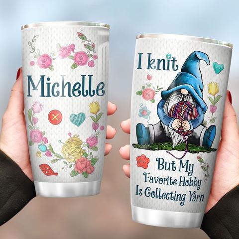 Knitting Gnome Personalized Stainless Steel Tumbler, Personalized Tumblers, Tumbler Cups, Custom Tumblers
