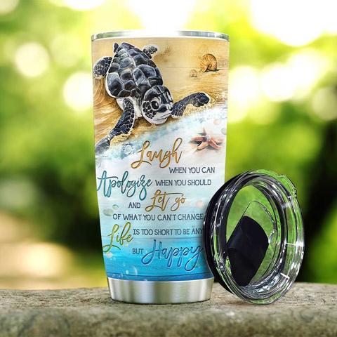 Laugh Love Life Turtle Personalized Kd2 Stainless Steel Tumbler, Personalized Tumblers, Tumbler Cups, Custom Tumblers