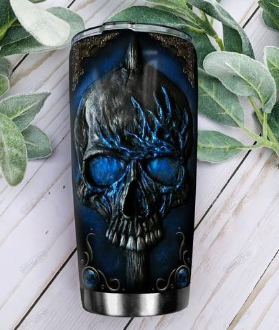 Leather Style Blue Skull Personalized Kd2 Stainless Steel Tumbler, Personalized Tumblers, Tumbler Cups, Custom Tumblers