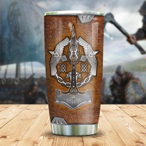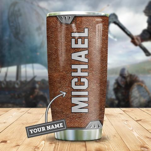 Leather Style Vikings Symbol Personalized Kd2 Stainless Steel Tumbler, Personalized Tumblers, Tumbler Cups, Custom Tumblers