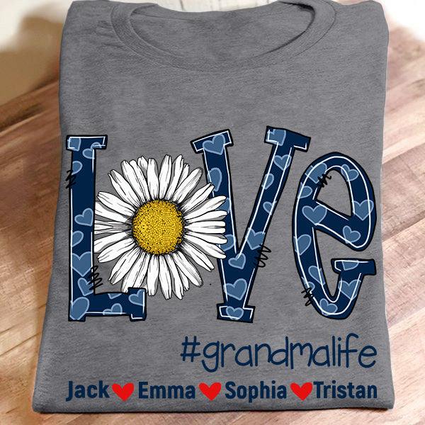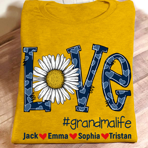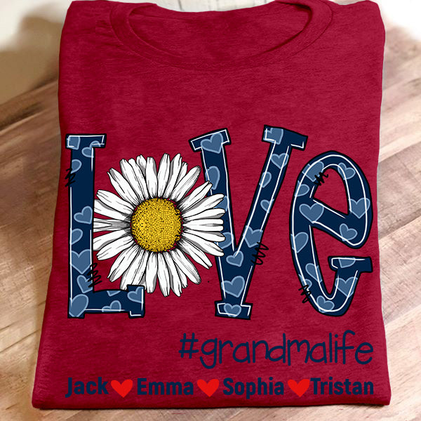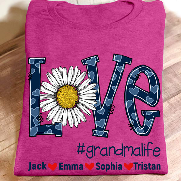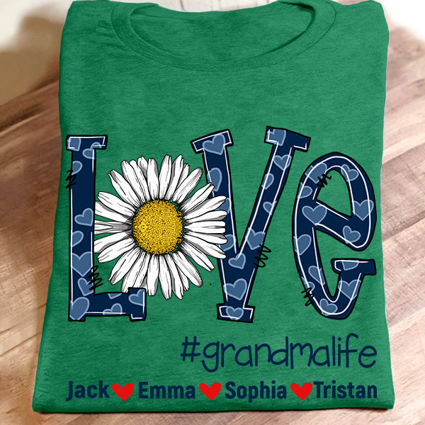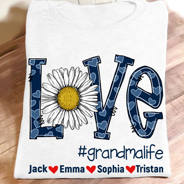 Love Grandma Life – Daisy White Flower White | Personalized T-Shirt