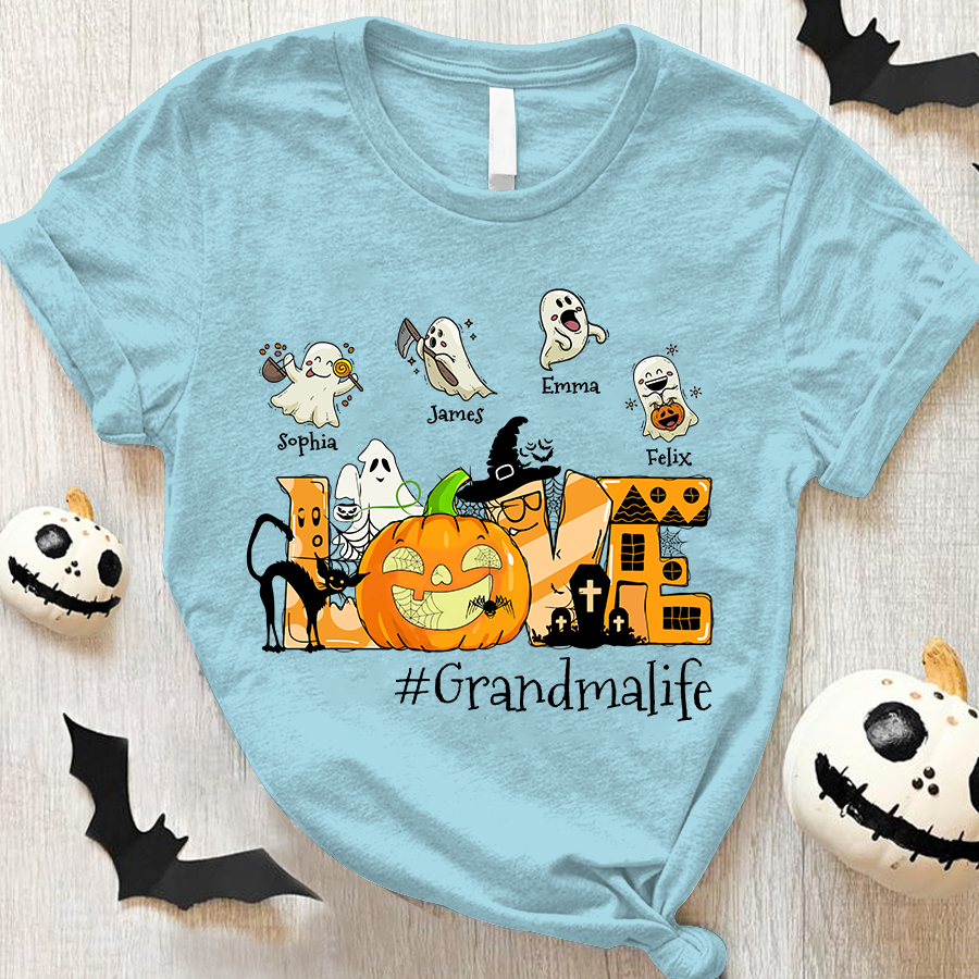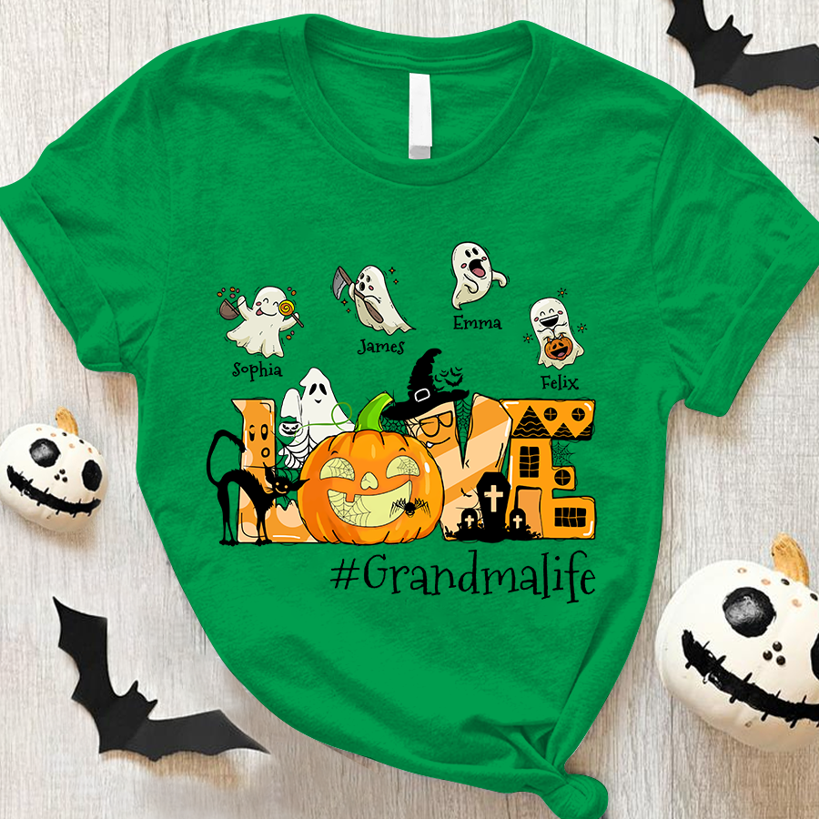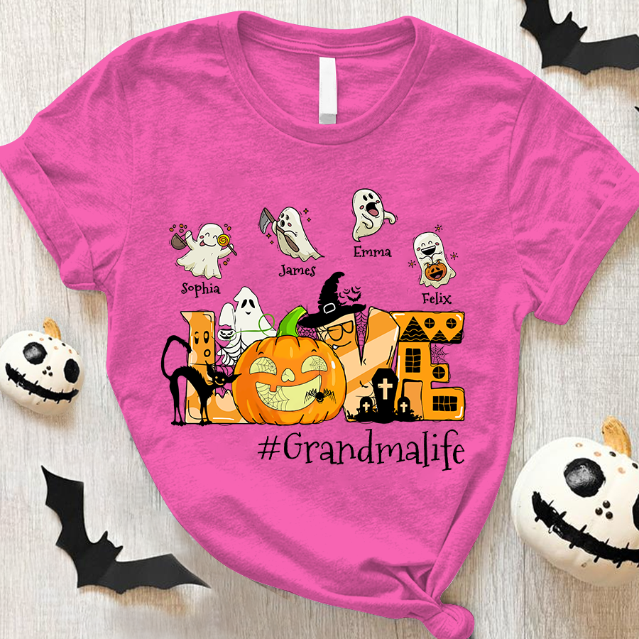 Love Grandma Life Pumpkins Halloween Personalized With Grandkids T-Shirt