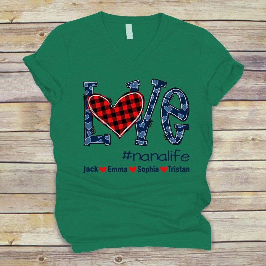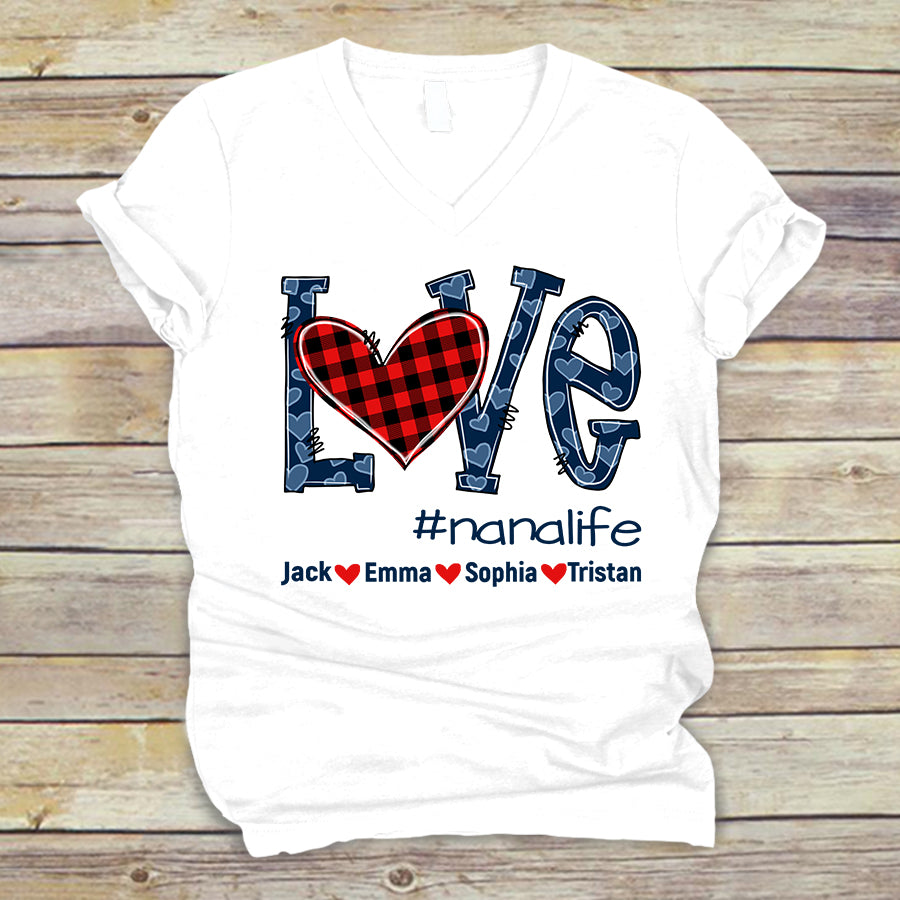 Love Nana Life – Blue | Personalized V-Neck T-Shirt