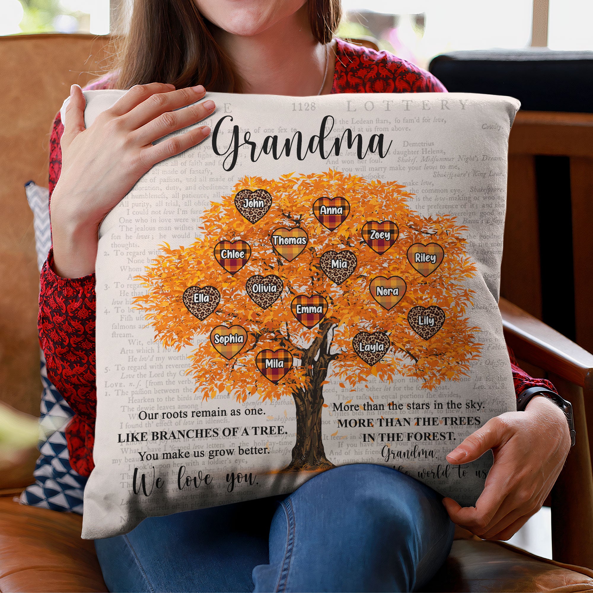 Love You More Than The Trees In The Forest – Personalized Pillow (Insert Included) – Fall Season Gift For Grandma – Heart Tree
