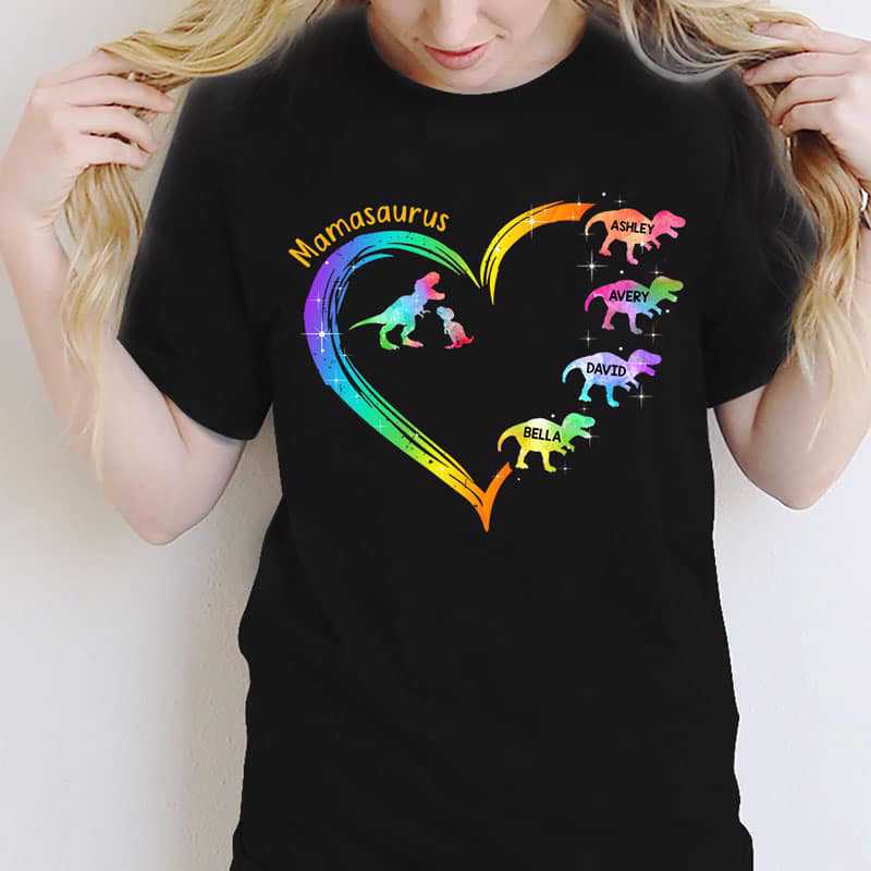 Mamasaurus Heart Colorful Personalized Shirt