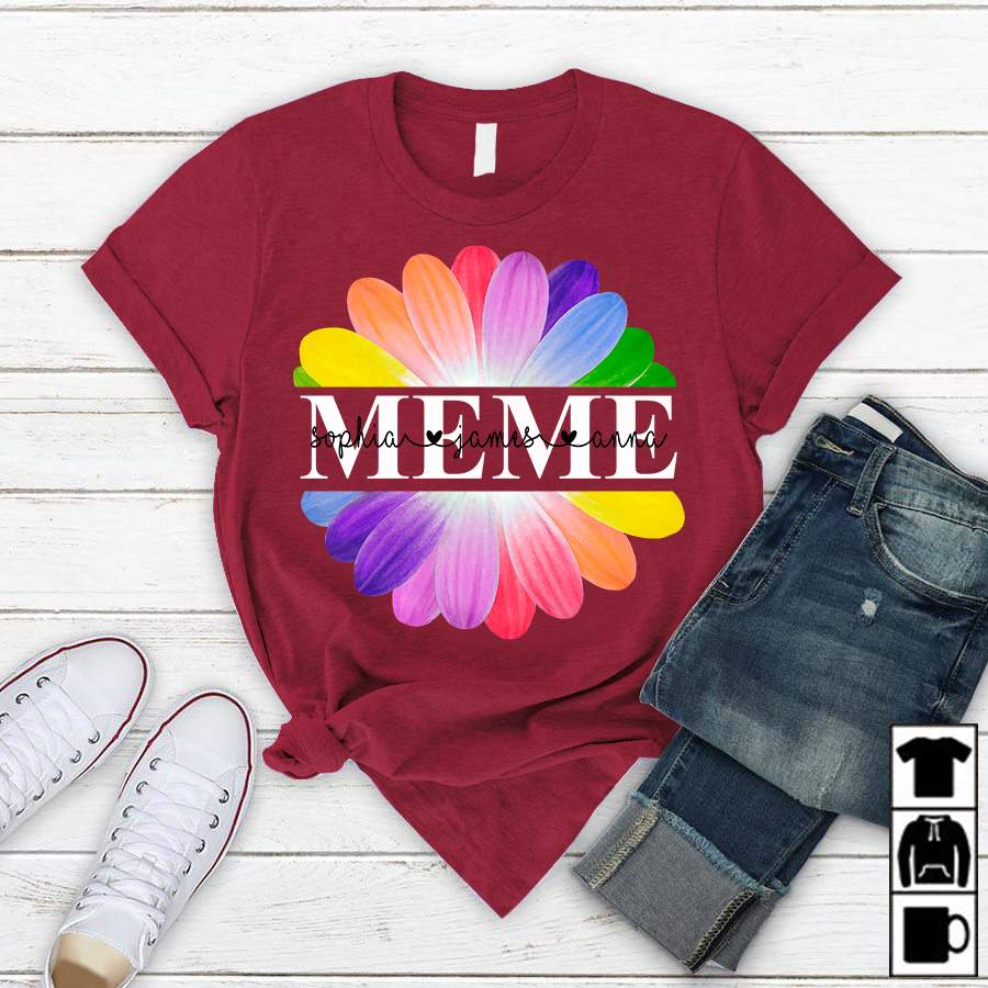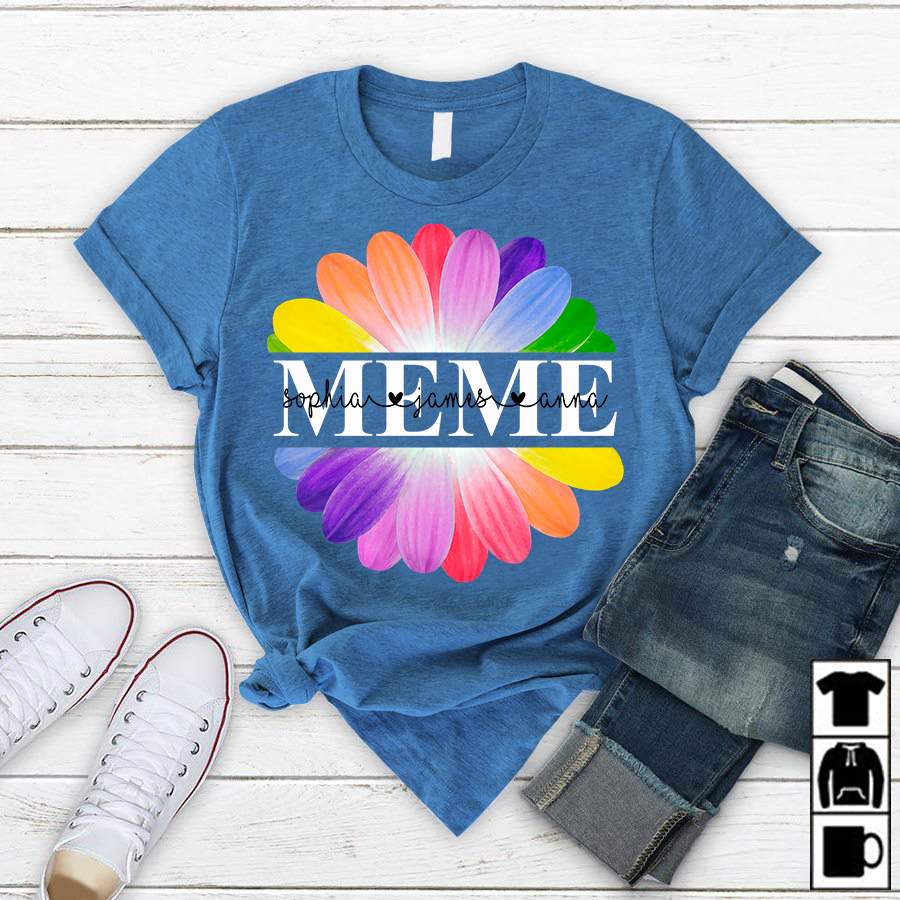 So whether you're looking to show off your own name or create a personalized gift for someone special, LateAndLow Store has got you covered. Start designing your own custom Meme – Rainbow Flower | Personalized T-shirt print-on-demand product today, and let us bring your vision to life!