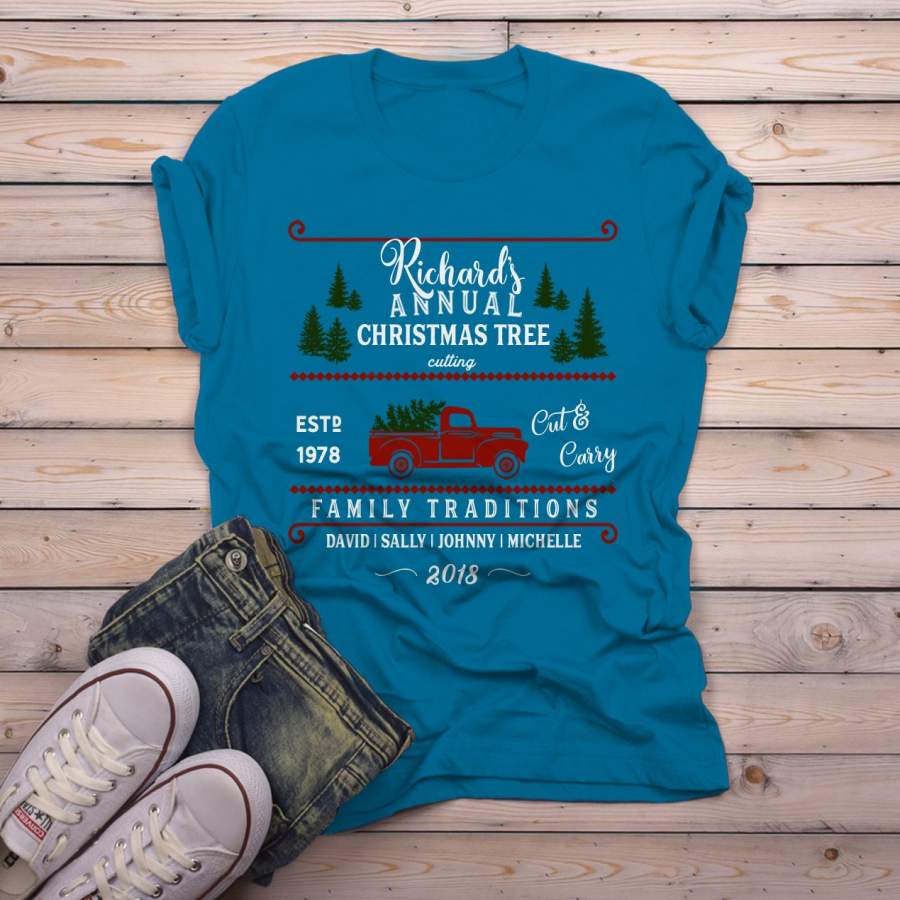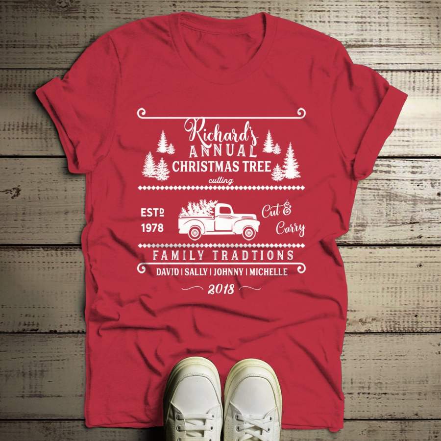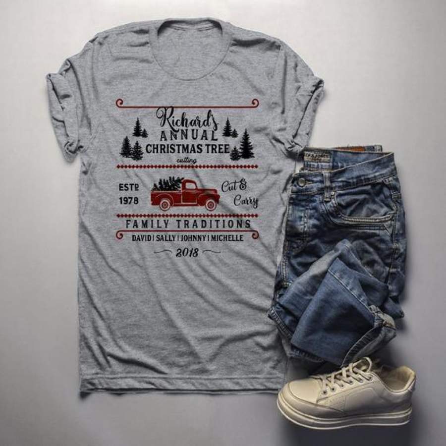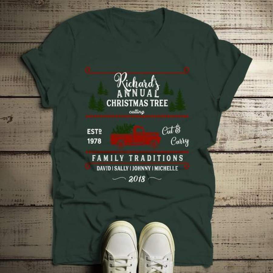 Men’s Personalized Christmas T Shirt Christmas Tree Shirts Cutting Cut Family Matching Shirts