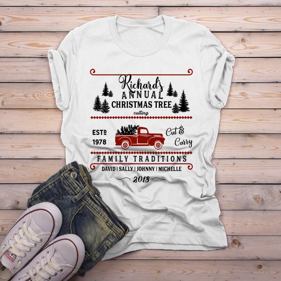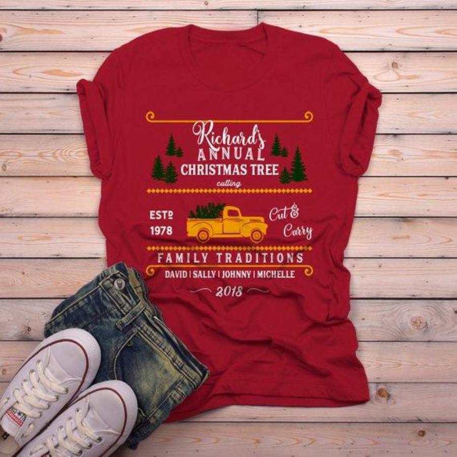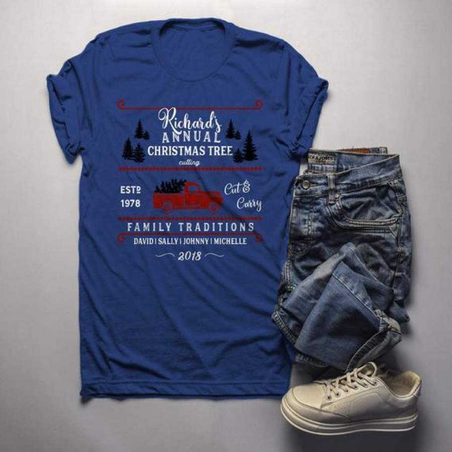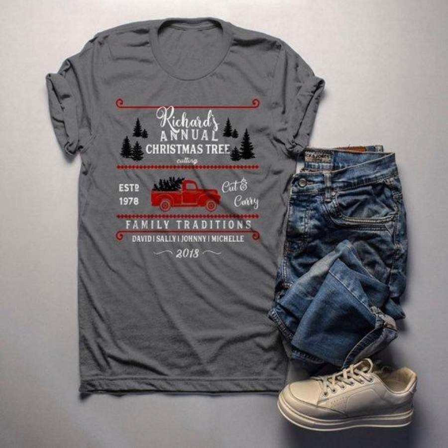 Men’s Personalized Christmas T Shirt Christmas Tree Shirts Cutting Cut Family Matching Shirts