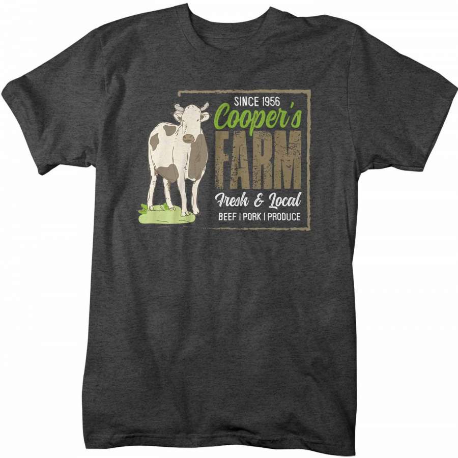 Men’s Personalized Farm T Shirt Vintage Cow Farmer Shirt Farmer Gift Idea Custom Dairy Farm Cow Tee Shirts Customized TShirt