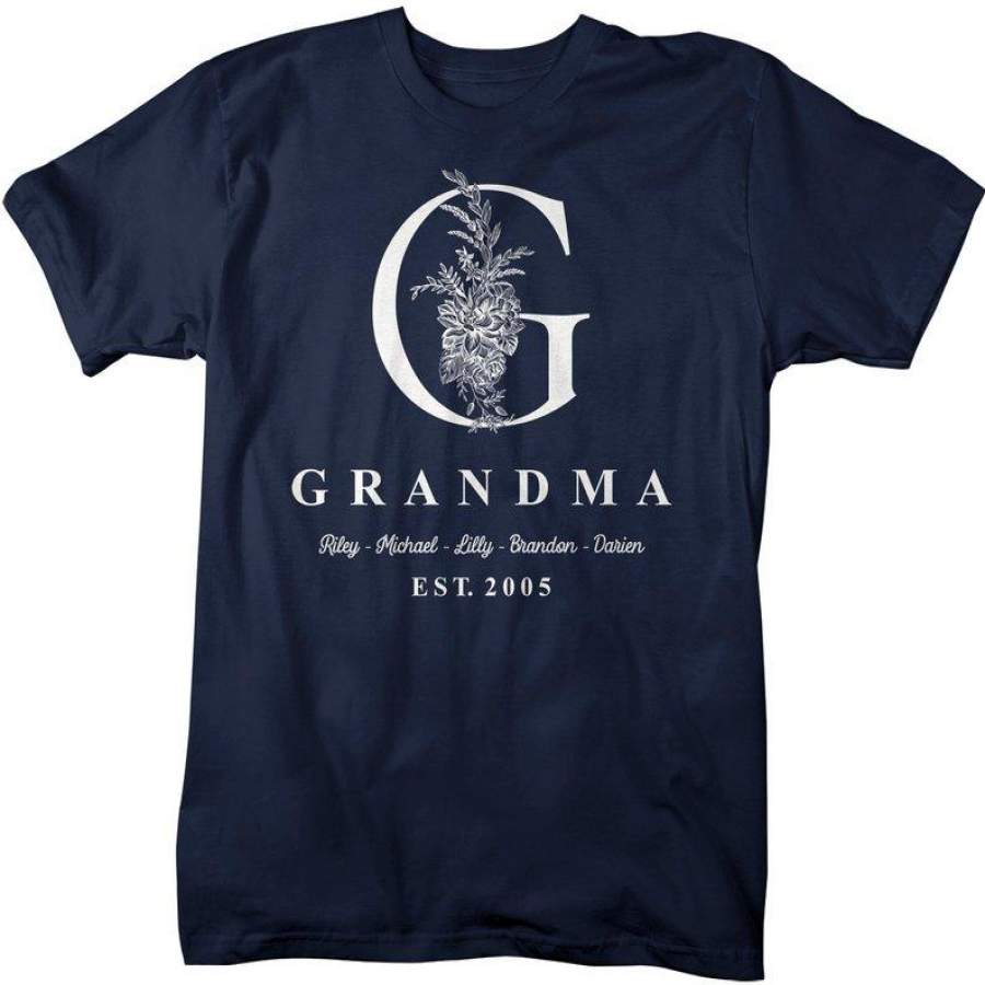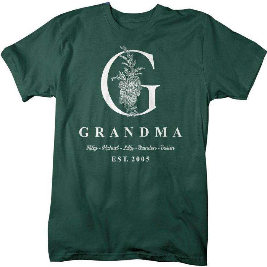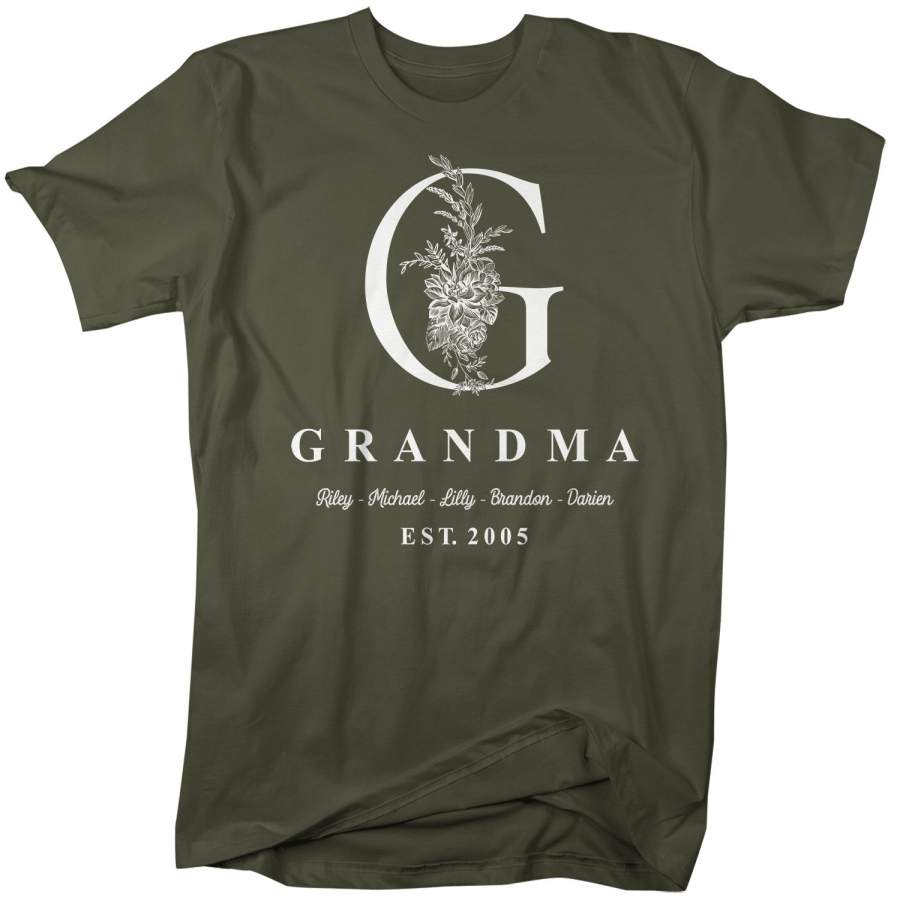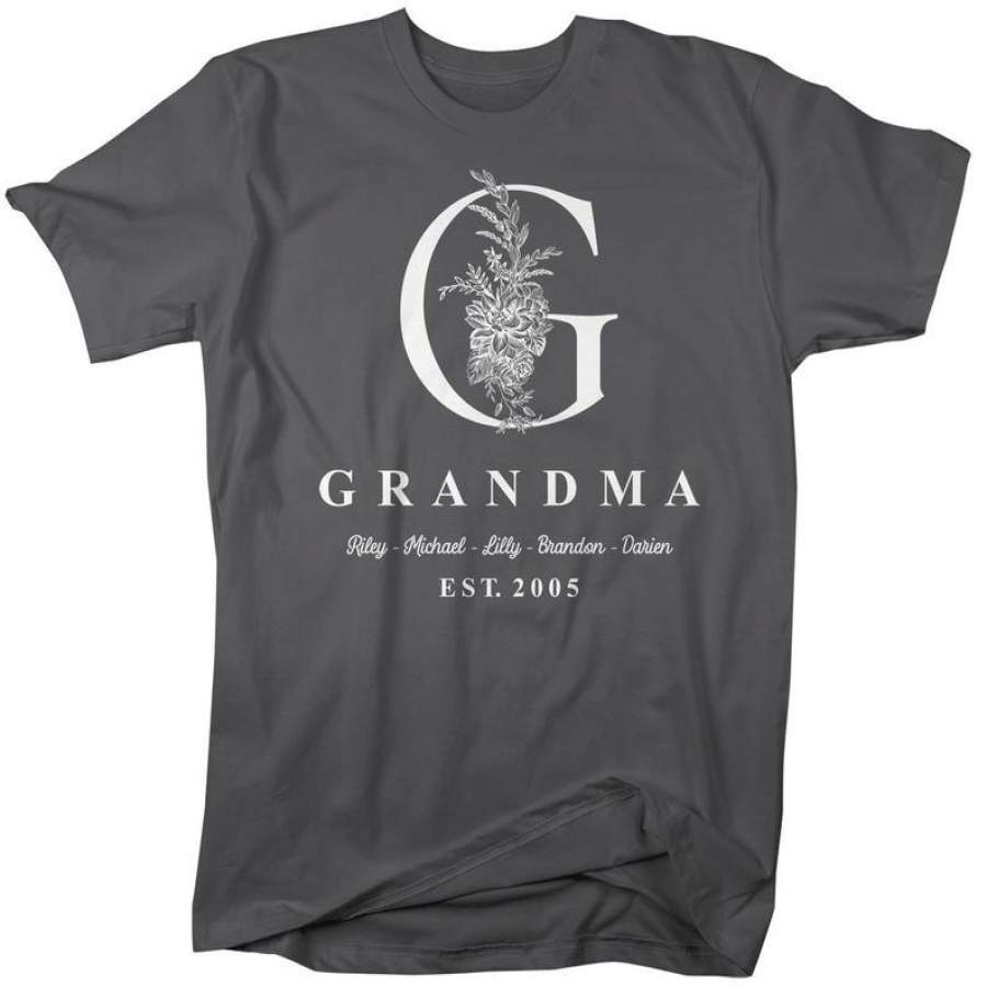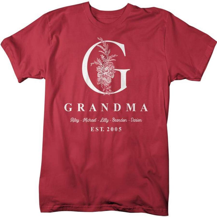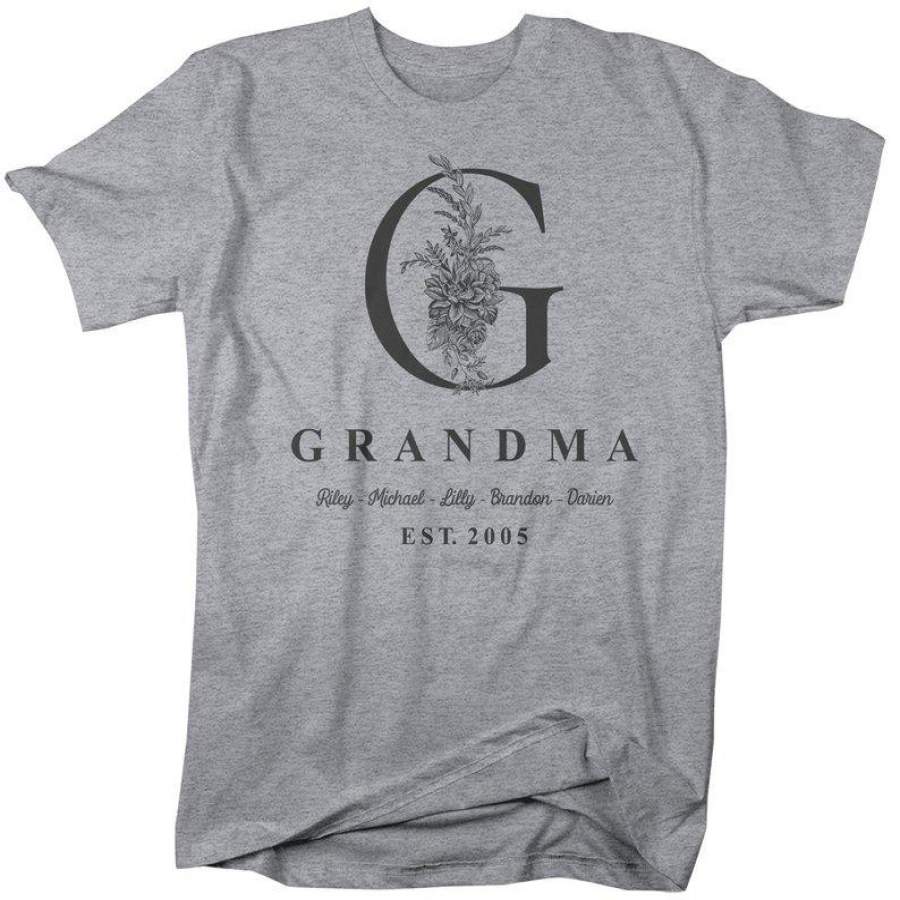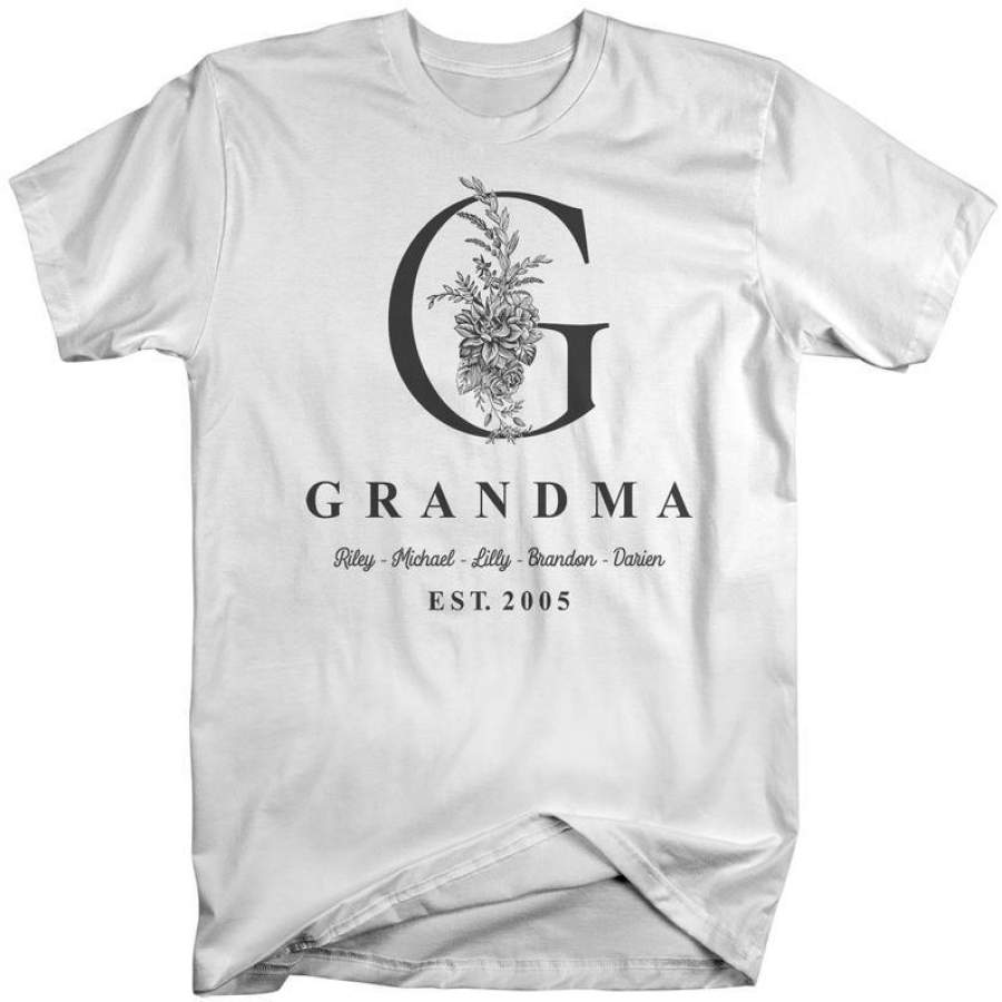 Men’s Personalized Grandma T-Shirt Monogram Grandma Shirts Names Grandchildren Gift Idea Mother’s Day