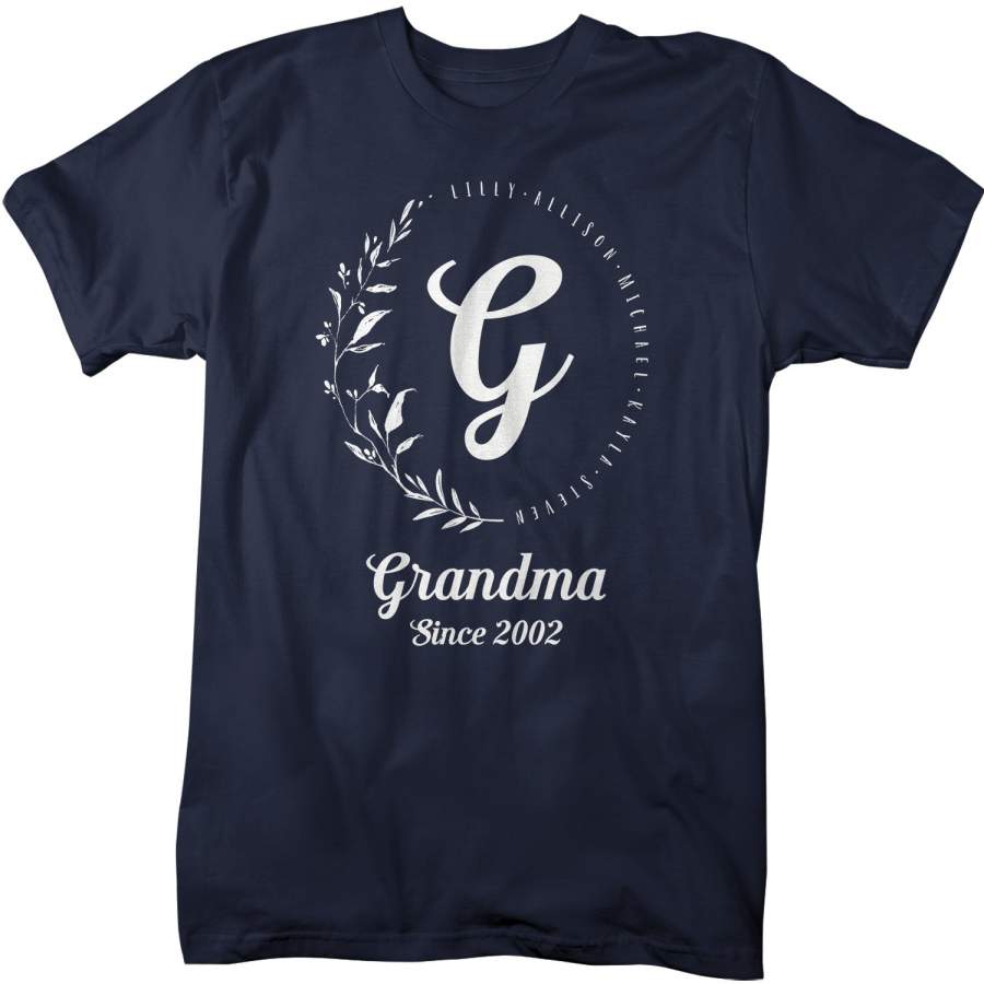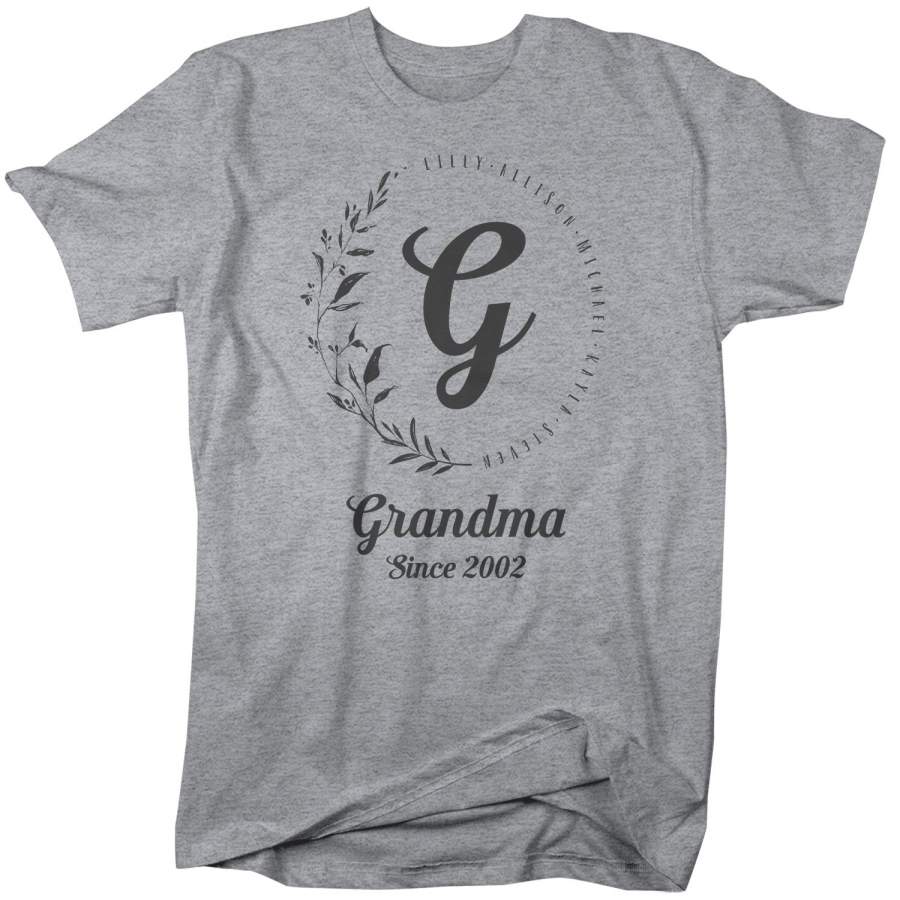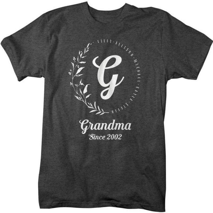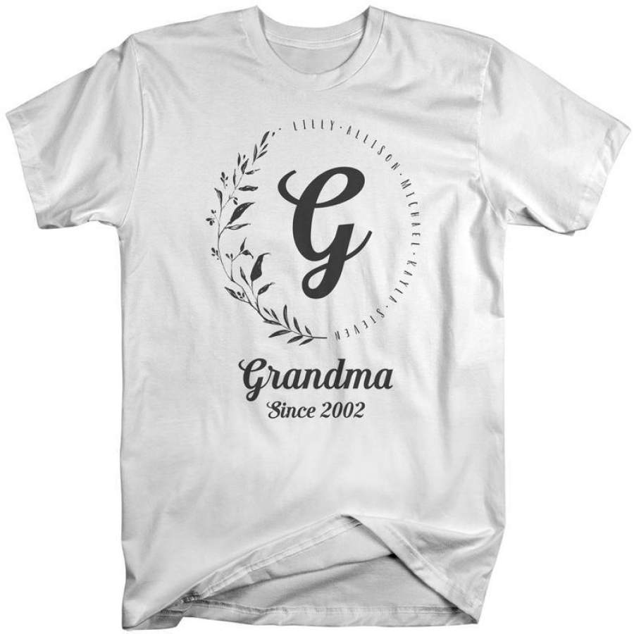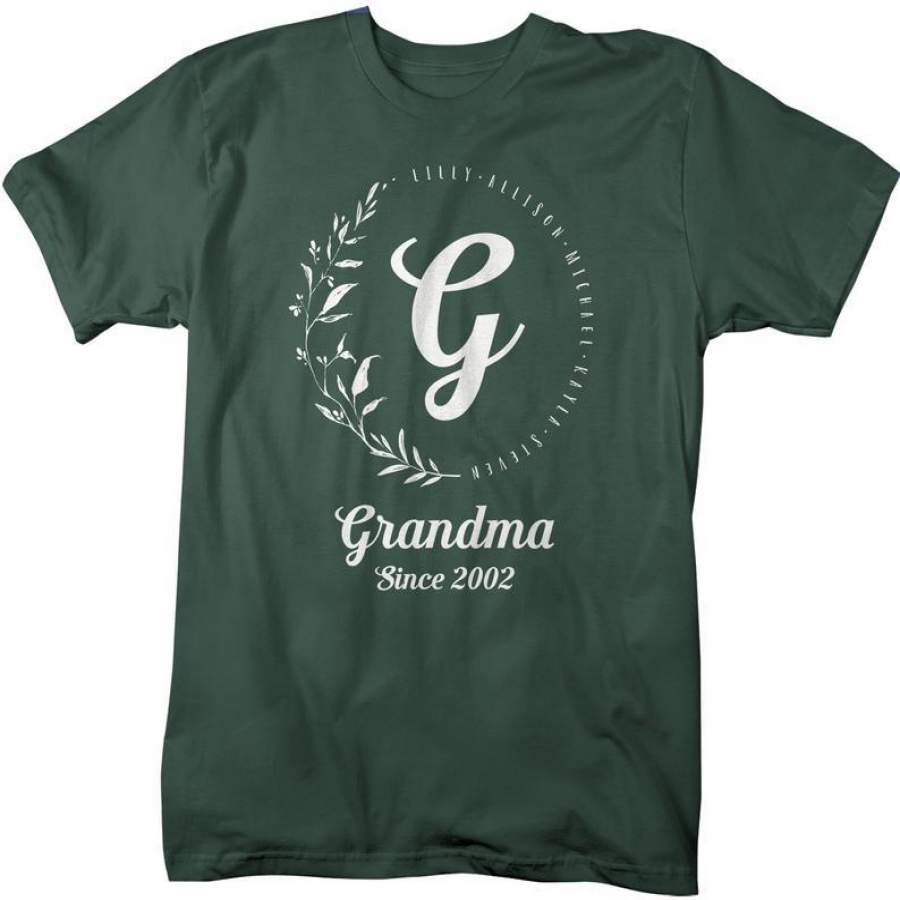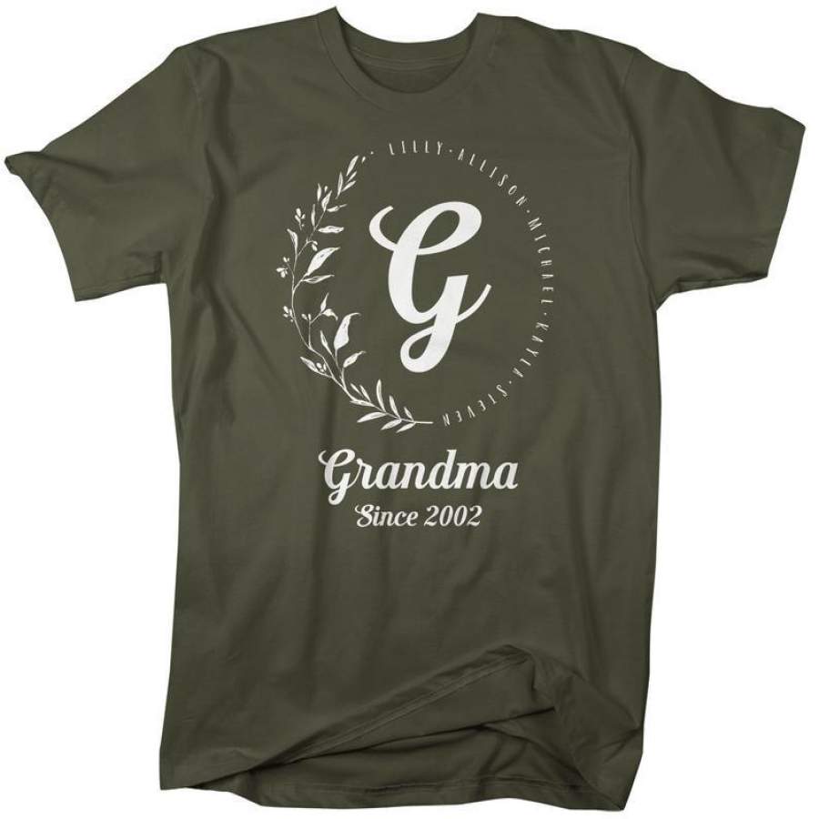 Men’s Personalized Grandma T-Shirt Monogram Wreath Grandma Shirts Names Grandchildren Gift Idea Mother’s Day