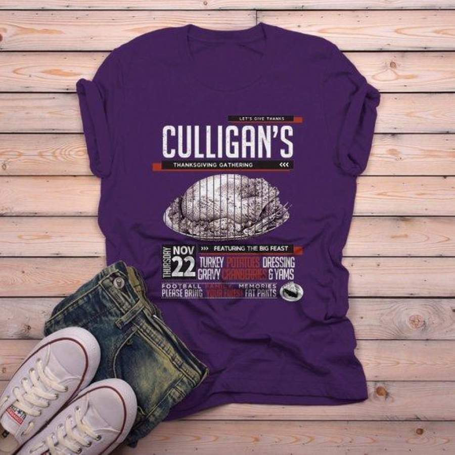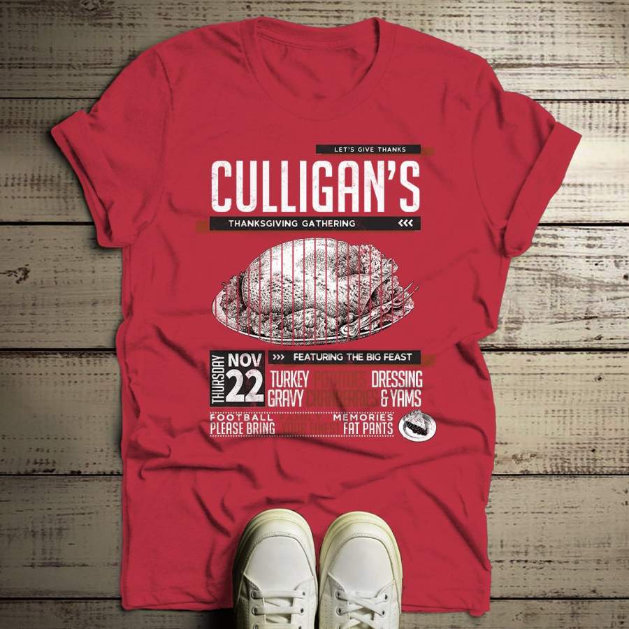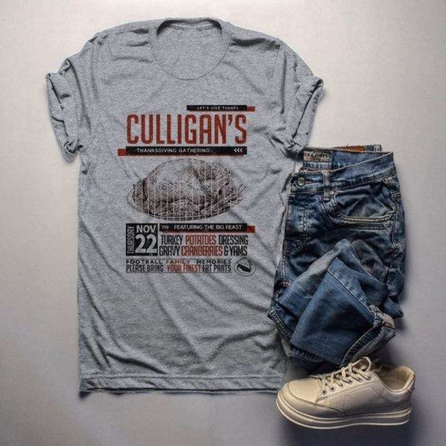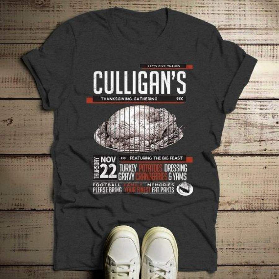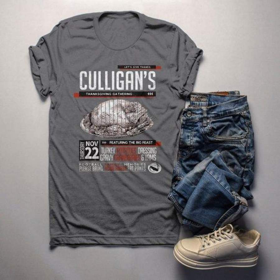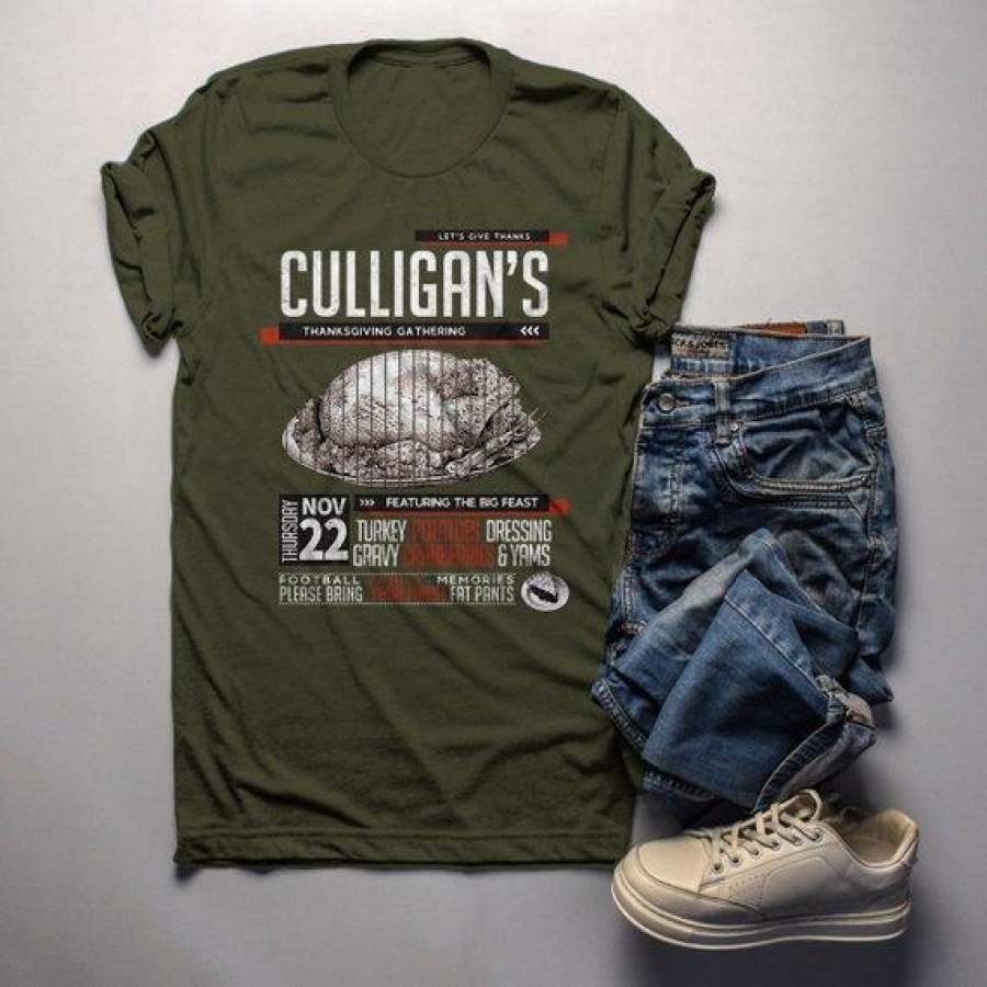 Men’s Personalized Vintage Thanksgiving T Shirt Poster Style Menu Feast Dinner Shirts Graphic Tee