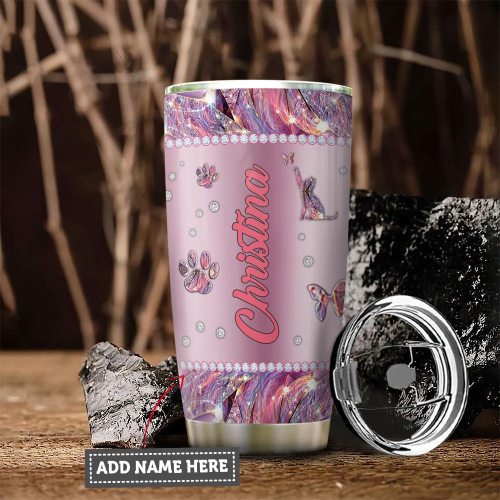 Metal Style Cat With Butterfly Personalized Kd2 Malz1404003Z Stainless Steel Tumbler
