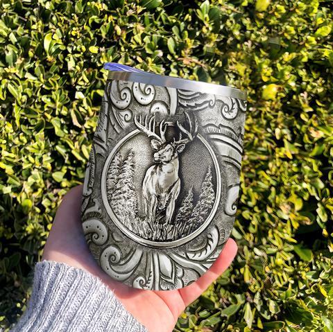 Metal Style Deer Hunting Personalized Wine Tumbler, Personalized Tumblers, Tumbler Cups, Custom Tumblers