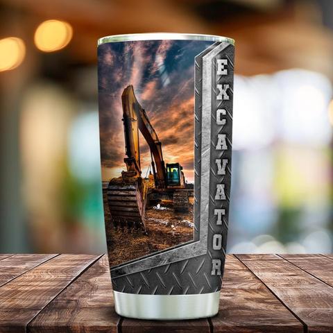 Metal Style Yellow Excavator Personalized Kd2 Stainless Steel Tumbler, Personalized Tumblers, Tumbler Cups, Custom Tumblers