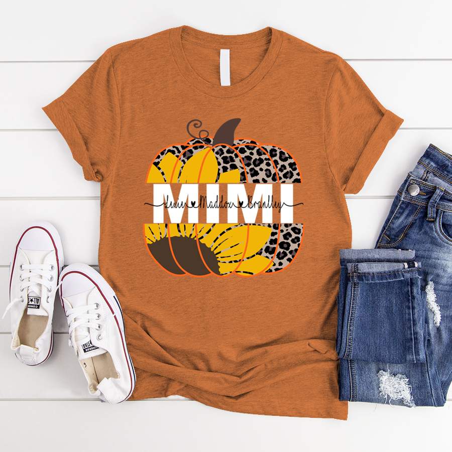 So whether you're looking to show off your own name or create a personalized gift for someone special, LateAndLow Store has got you covered. Start designing your own custom Mimi Pumpkin Flower Art | Personalized T-shirt print-on-demand product today, and let us bring your vision to life!