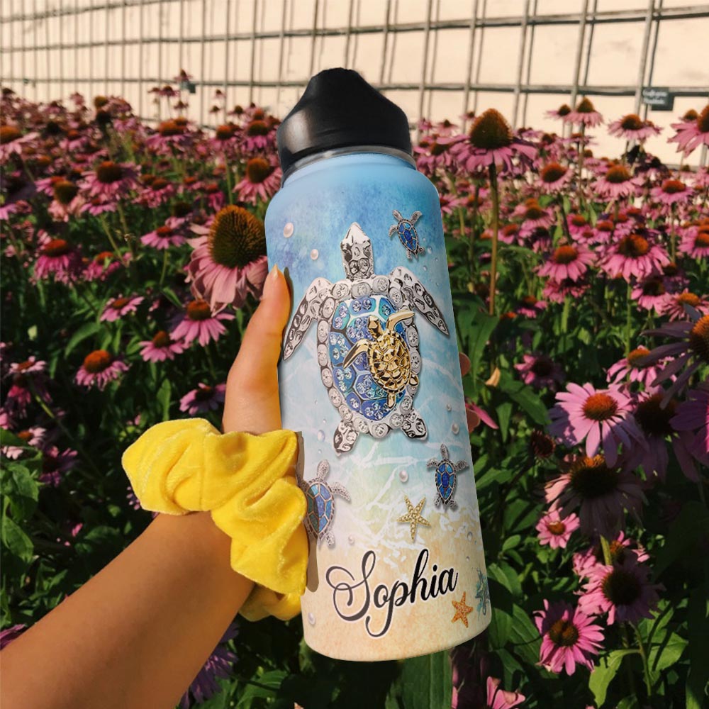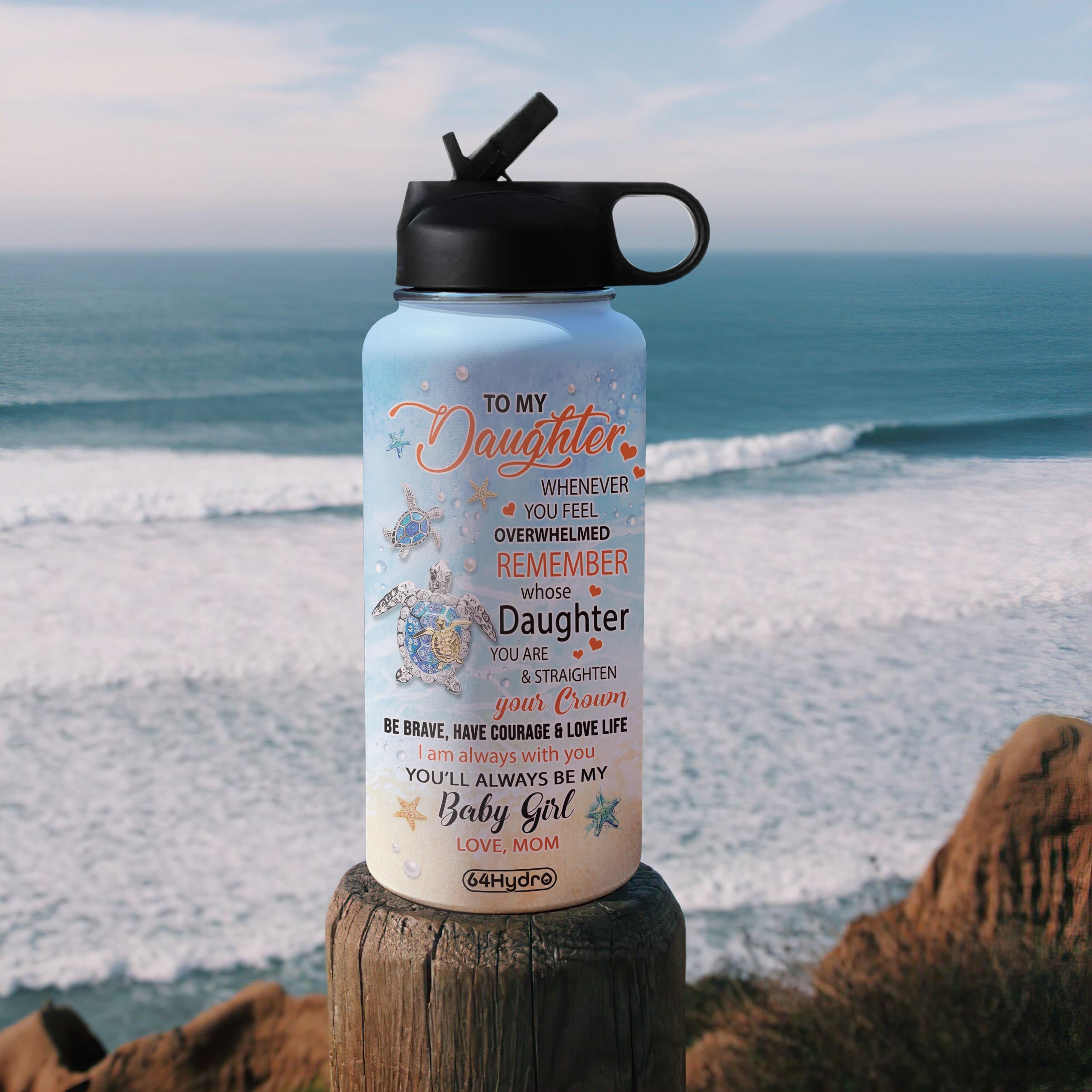 Mom To Daughter Turtle Personalized Nnrz2004002Z Stainless Steel Bottle With Straw Lid