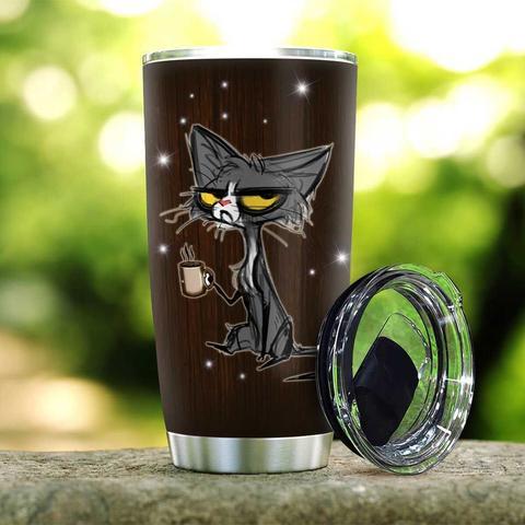 Morning Coffee Cat Kd2 Stainless Steel Tumbler, Personalized Tumblers, Tumbler Cups, Custom Tumblers