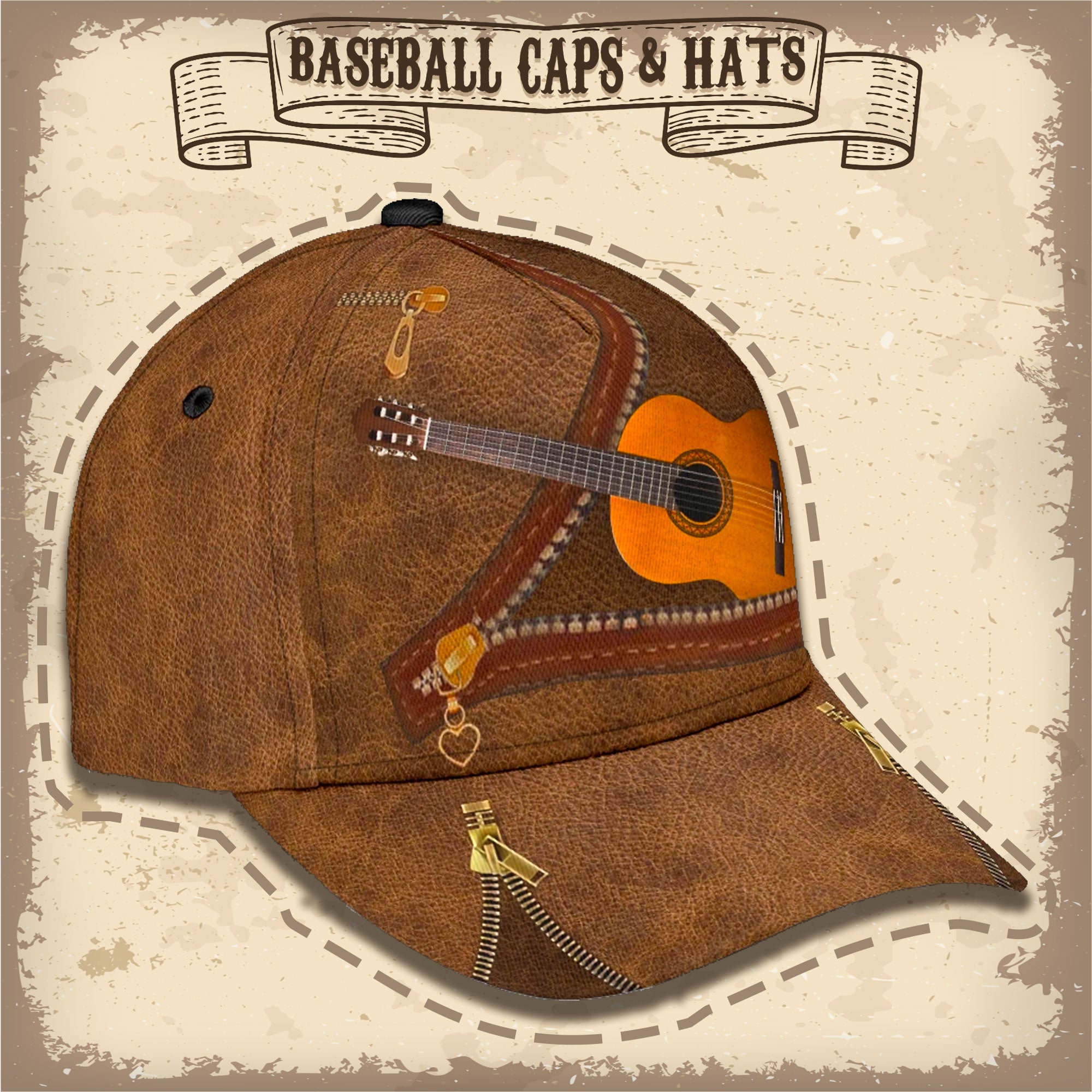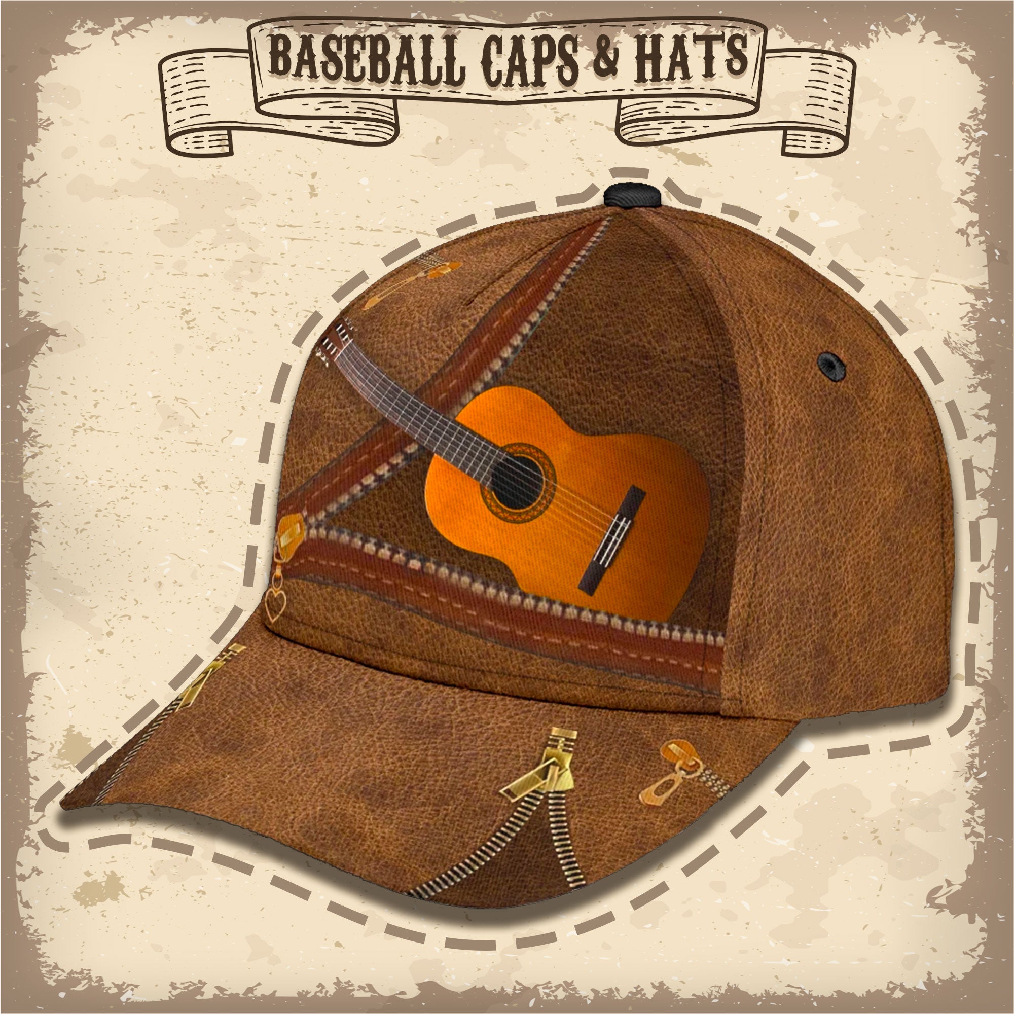 Music Guitar Custom Hats For Men & Women 3D Prints Personalized Baseball Caps