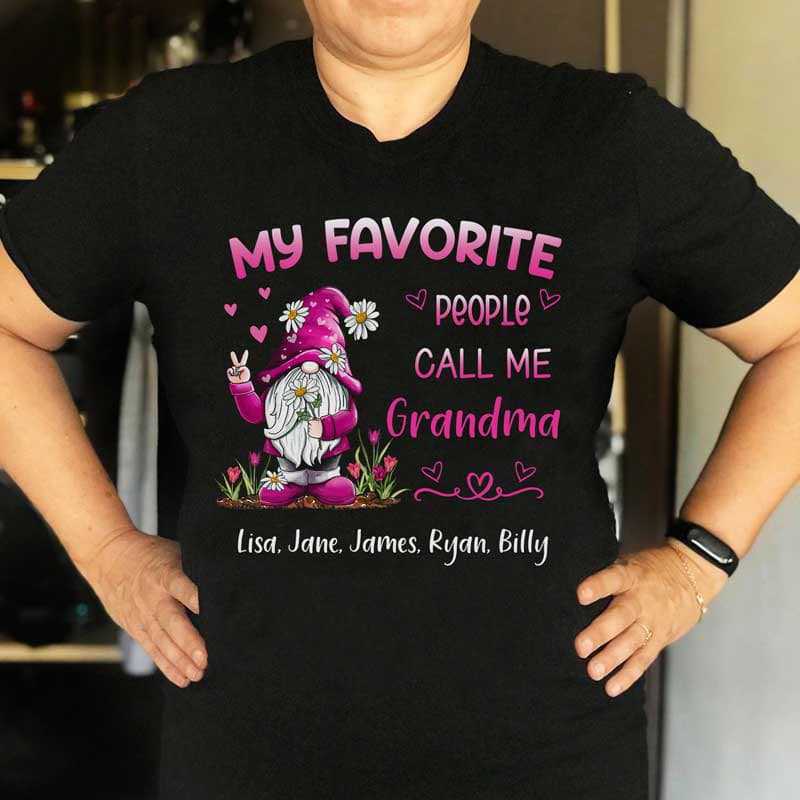 My Favorite People Call Me Grandma Pink Gnome Personalized Shirt