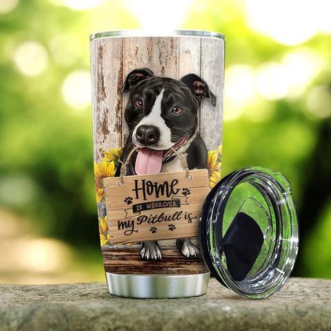 My Home Is Wherever My Pitbull Is Kd2 Stainless Steel Tumbler, Personalized Tumblers, Tumbler Cups, Custom Tumblers