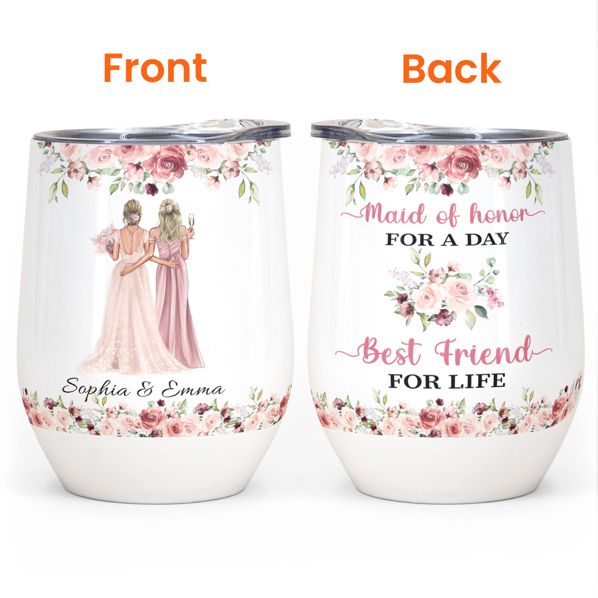 My Maid Of Honor, Personalized Wine Tumbler, Wedding Gift For Bridesmaid