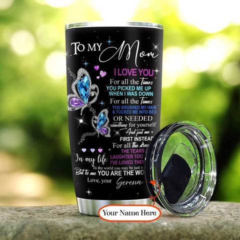 My Mom My World Butterfly Personalized Kd2 Stainless Steel Tumbler, Personalized Tumblers, Tumbler Cups, Custom Tumblers