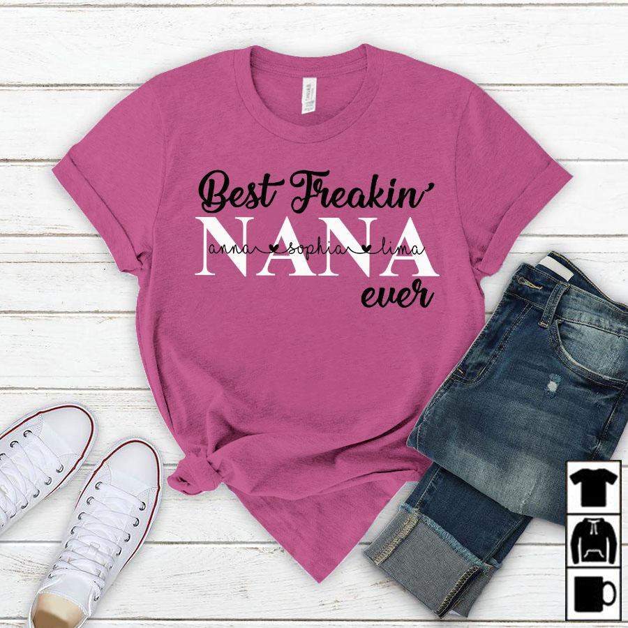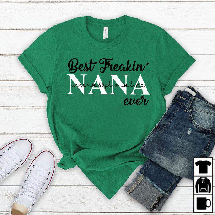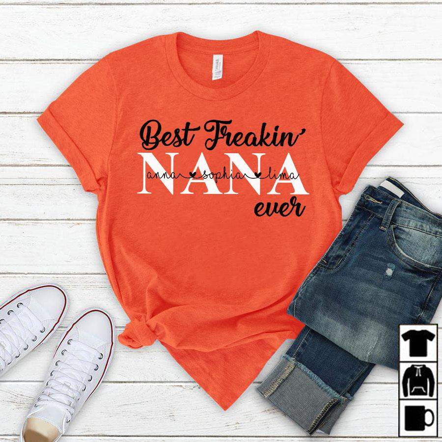 Namashops Personalized Best Freakin’ Nana Ever, Custom Kid’s Names Shirt