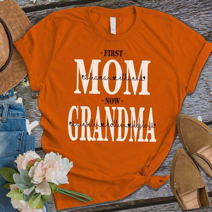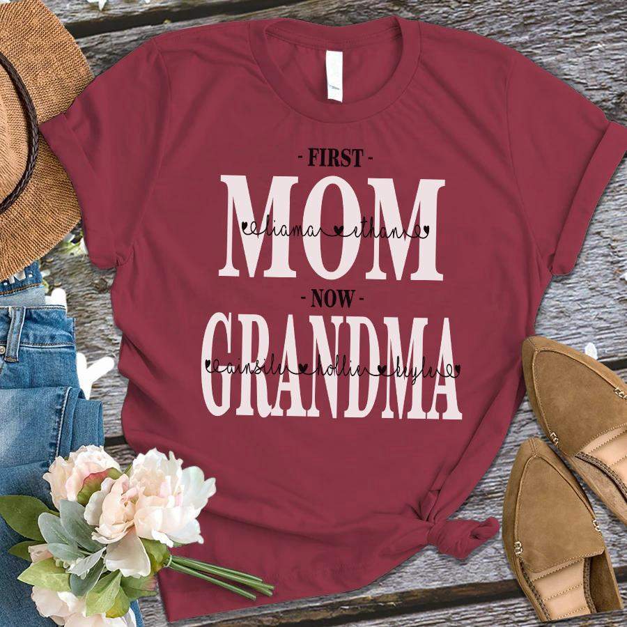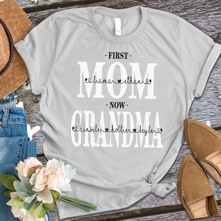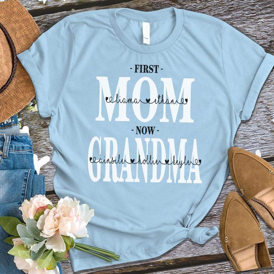 Namashops Personalized First Mom Now Grandma Art New, Custom Names Shirt