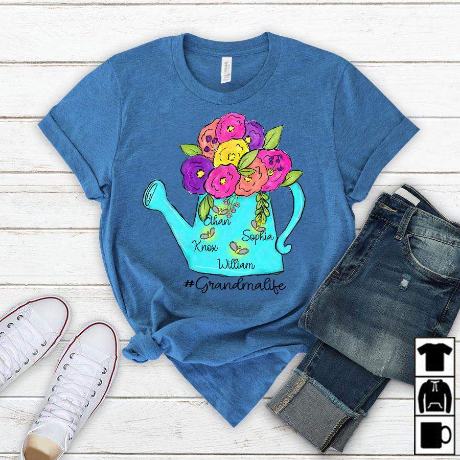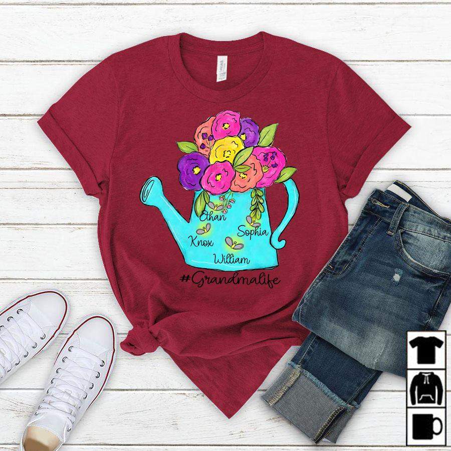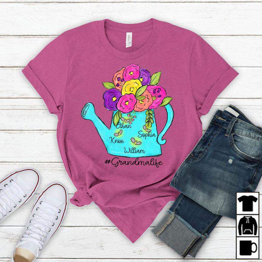 Namashops Personalized Grandma Life Kids Names Watercolor, Custom Names Shirt