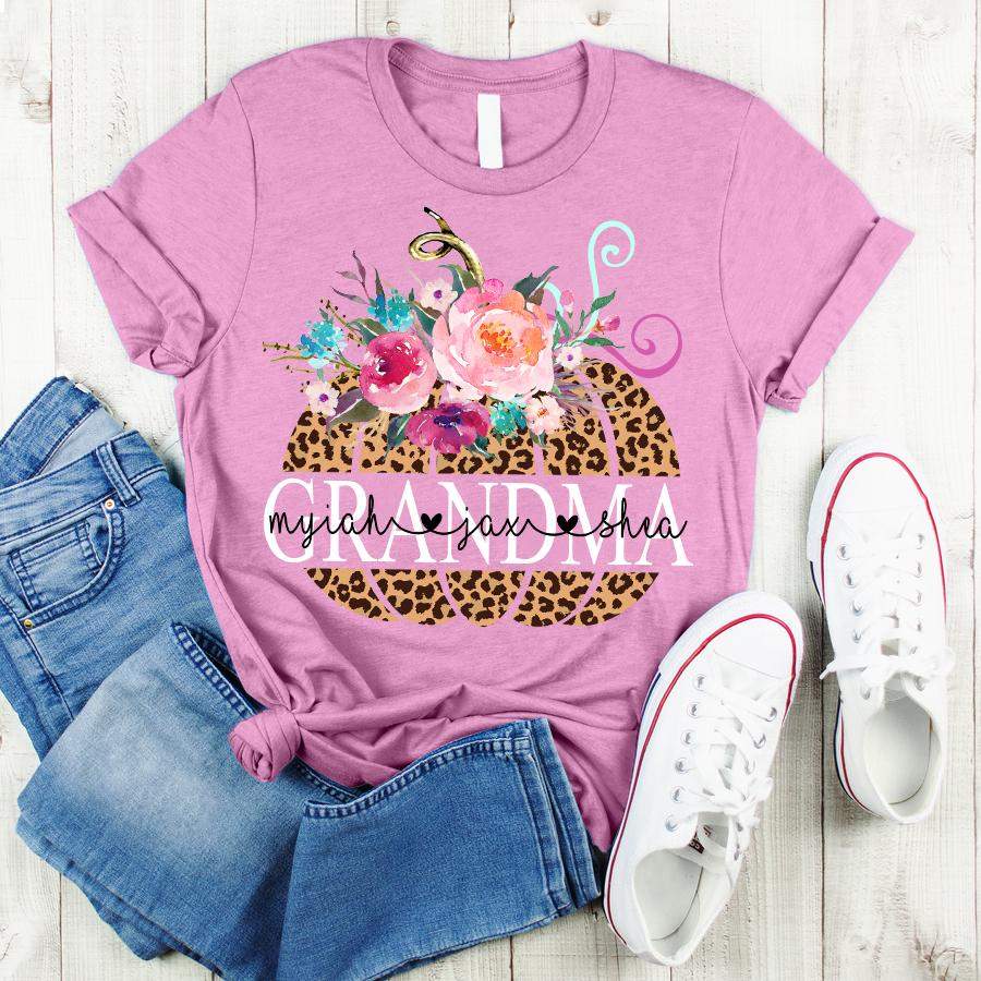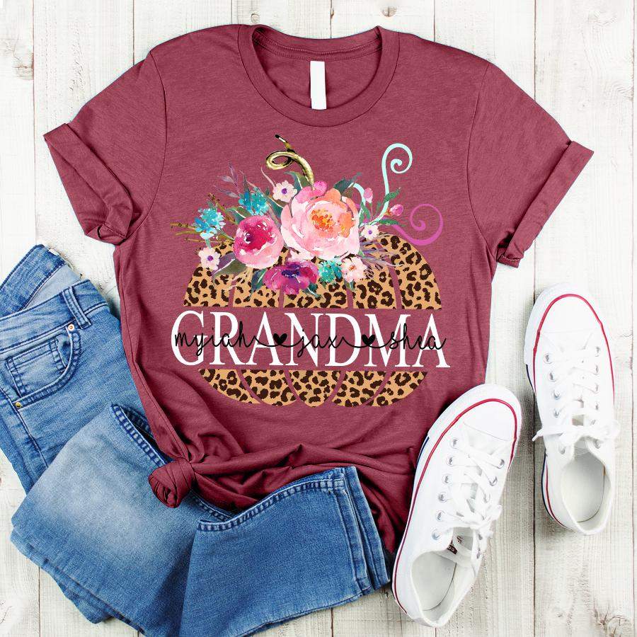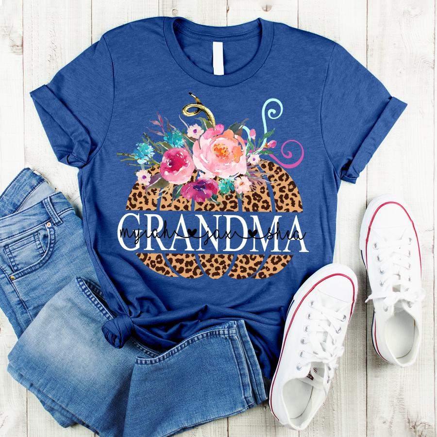 Namashops Personalized Grandma Pumpkin And Grandkids, Halloween Shirt