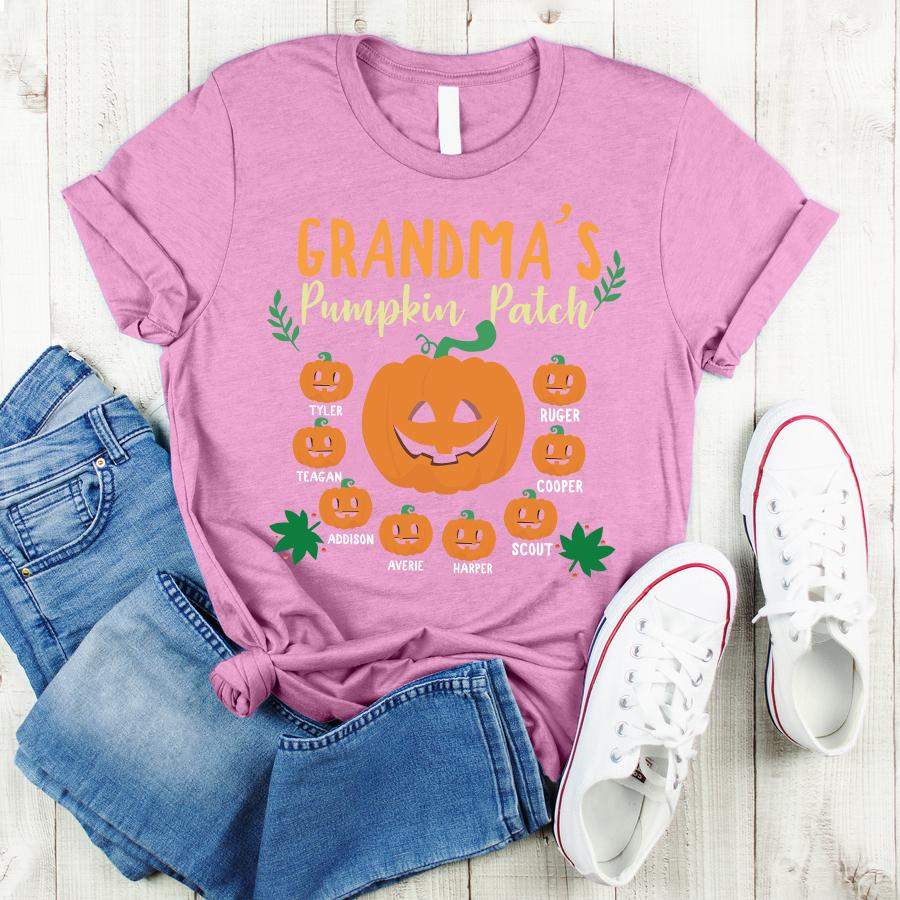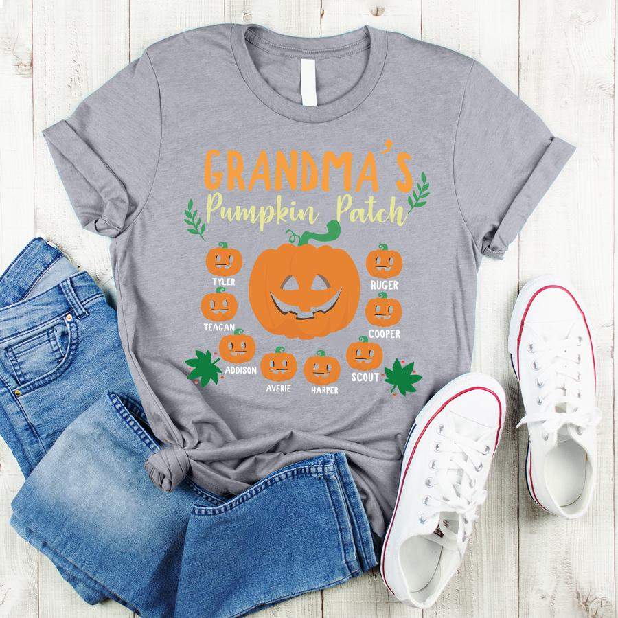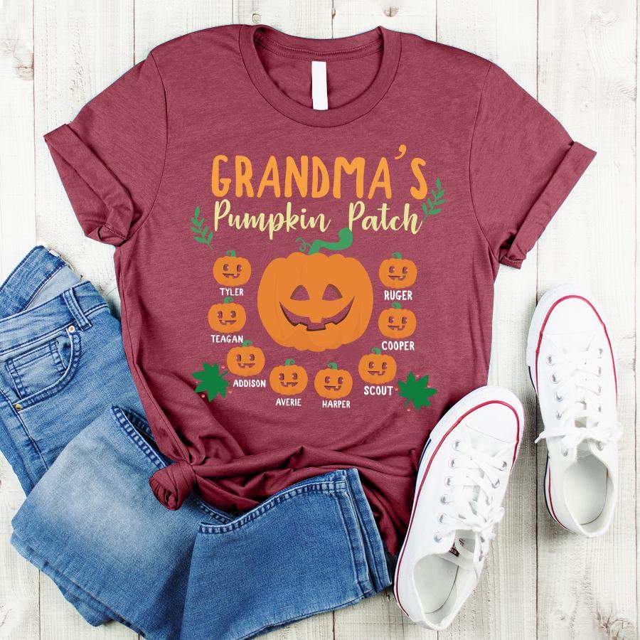 Namashops Personalized Grandma’s Pumpkin Patch And Grandkids, Custom Names Shirt