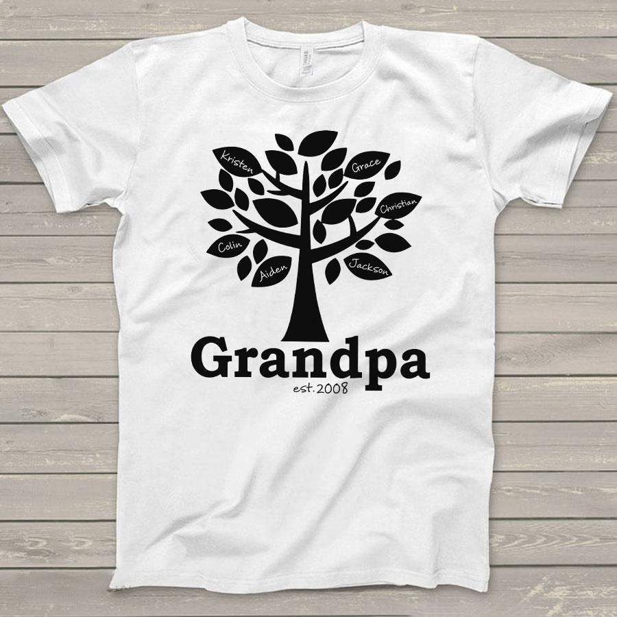 Namashops Personalized Grandpa Tree, Custom Names Shirt