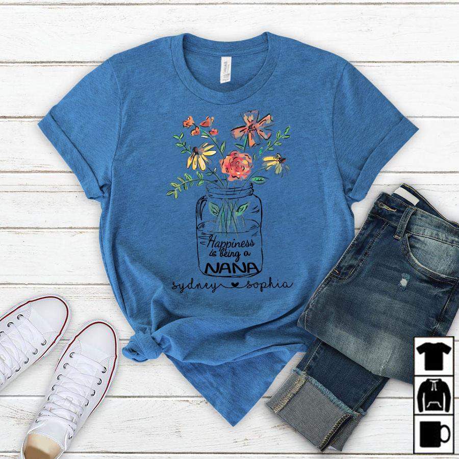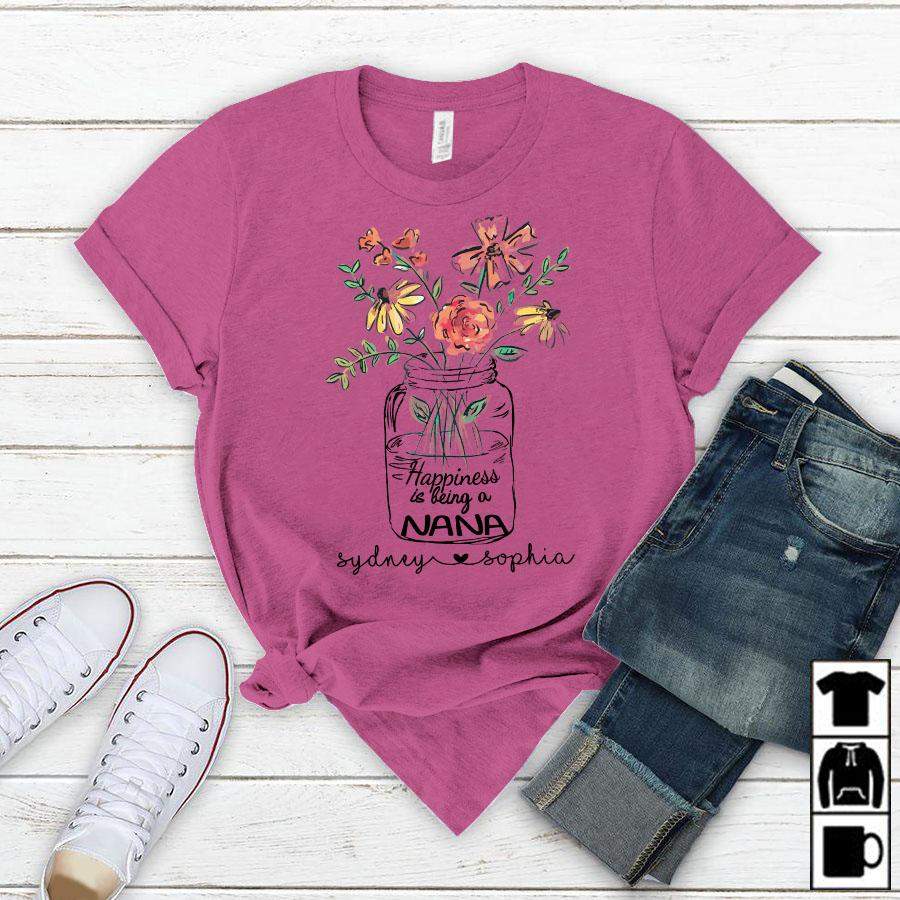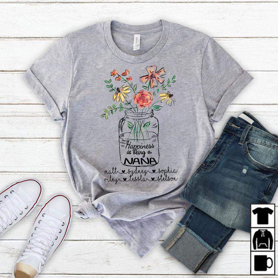 Namashops Personalized Happiness Is Being A Nana, Custom Nana Shirt