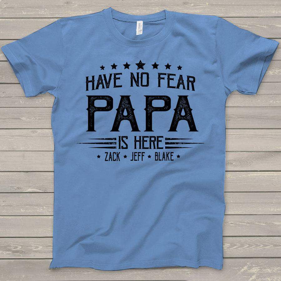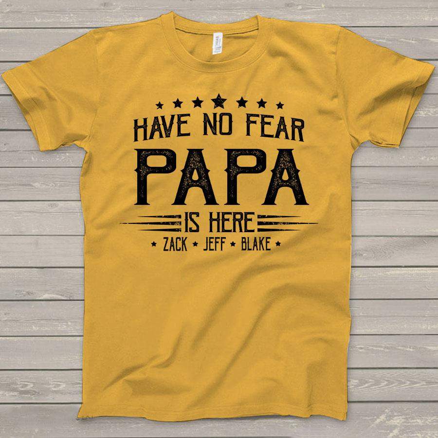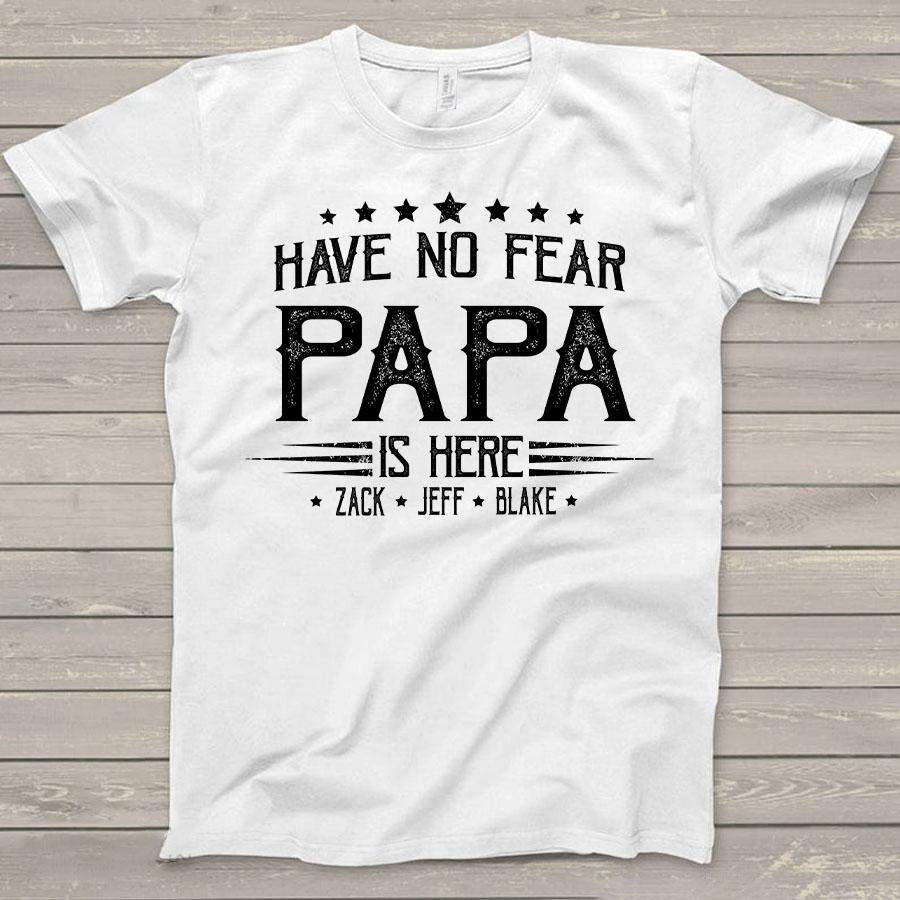 Namashops Personalized Have No Fear Papa Is Here, Custom Names Shirt