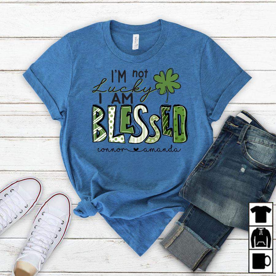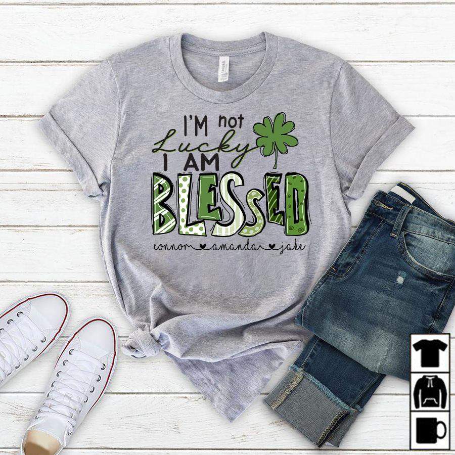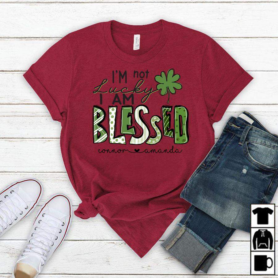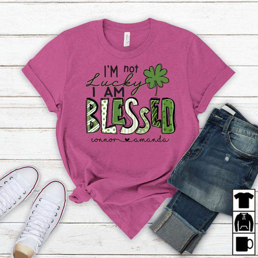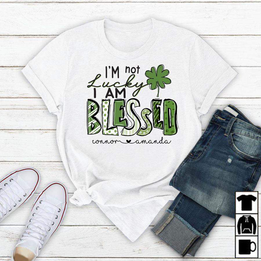 Namashops Personalized I’m Not Lucky, I Am Blessed, Kid’s Names T-Shirt