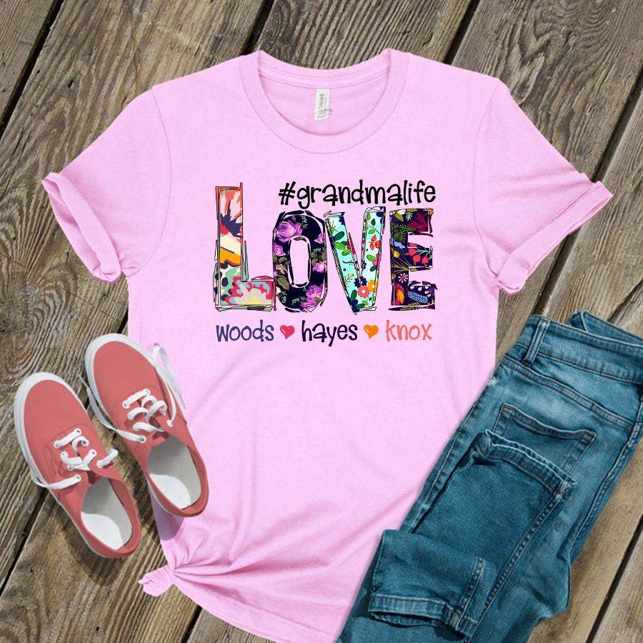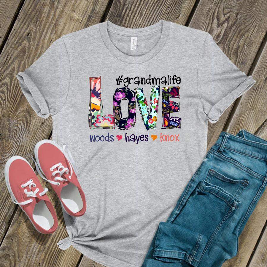 Namashops Personalized Love Grandma Life Flower Art, Custom Names Shirt