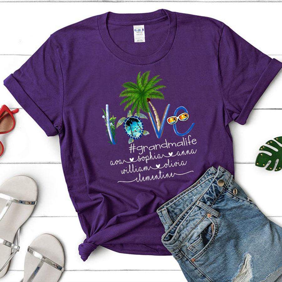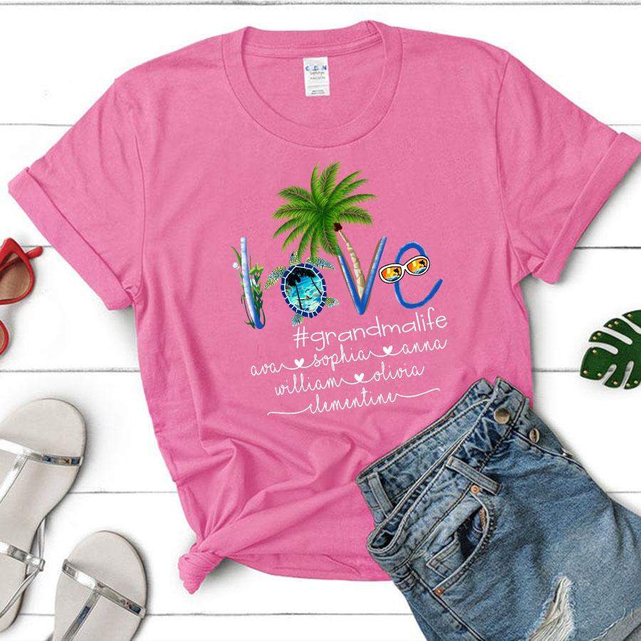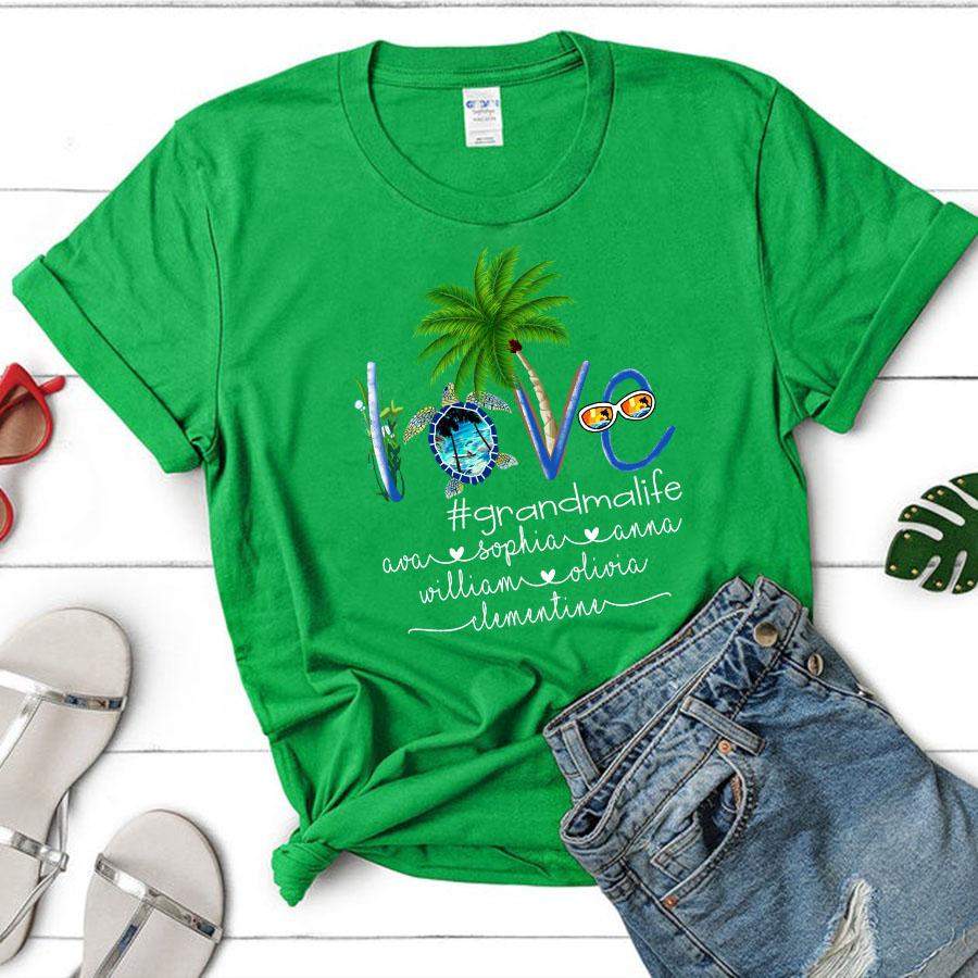 Namashops Personalized Love Grandma Life Turtle, Custom Names Shirt
