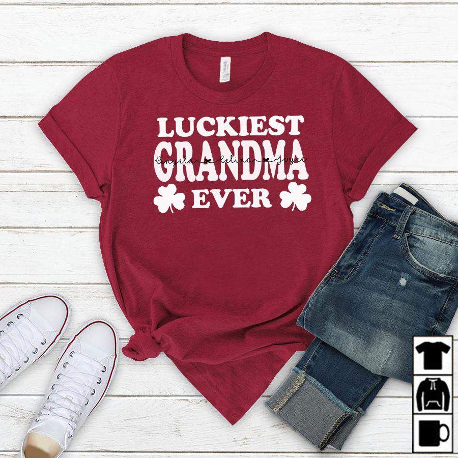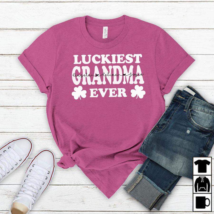 Namashops Personalized Luckiest Grandma Ever V1, Custom Names Shirt