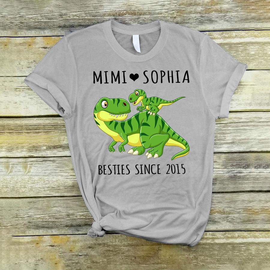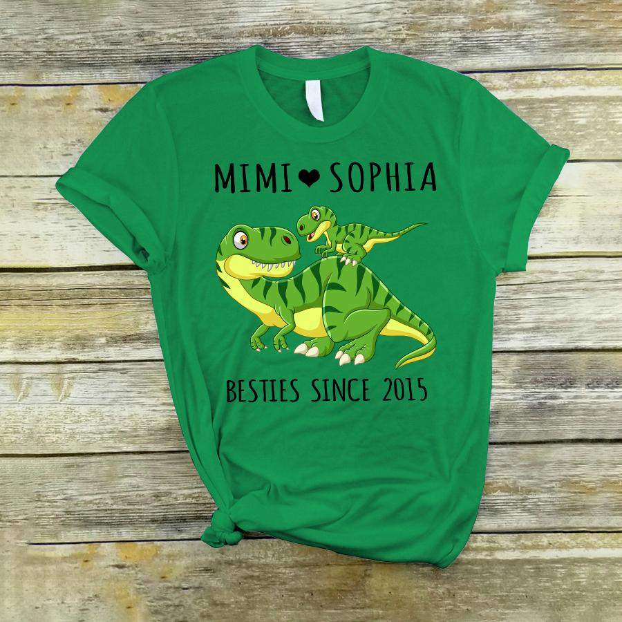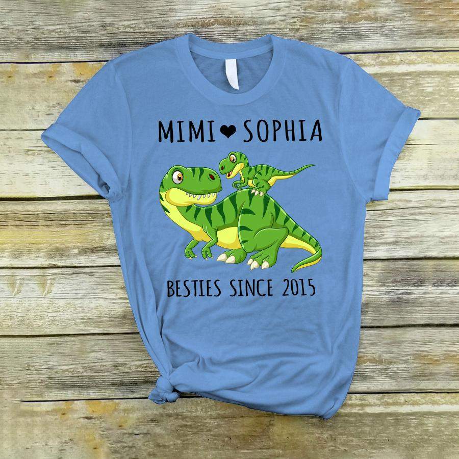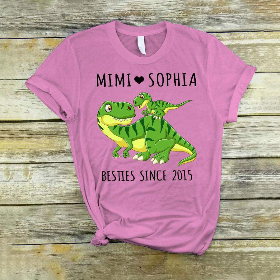 Namashops Personalized Mimi And Grandkid Dinosaur, Custom Names Shirt