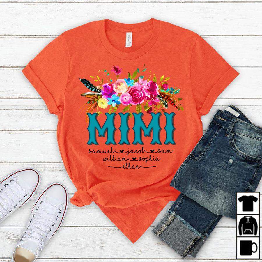 Namashops Personalized Mimi And Grandkids, Flower Shirt