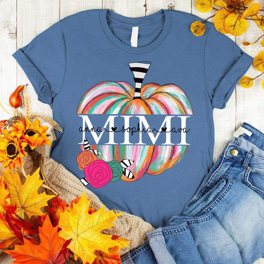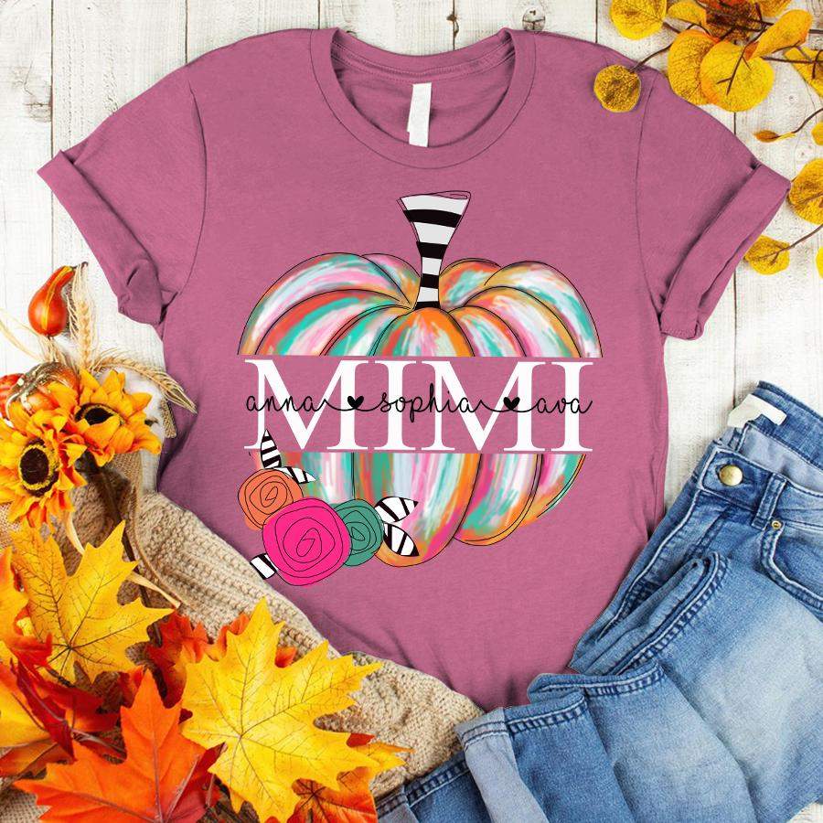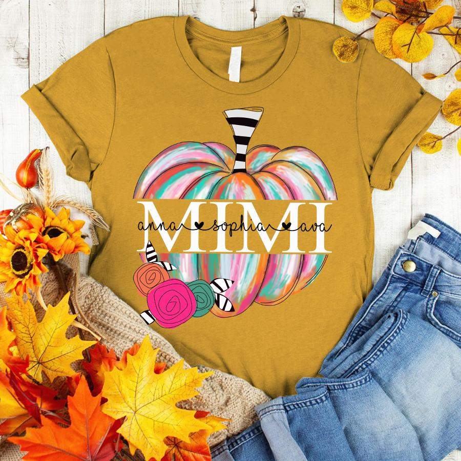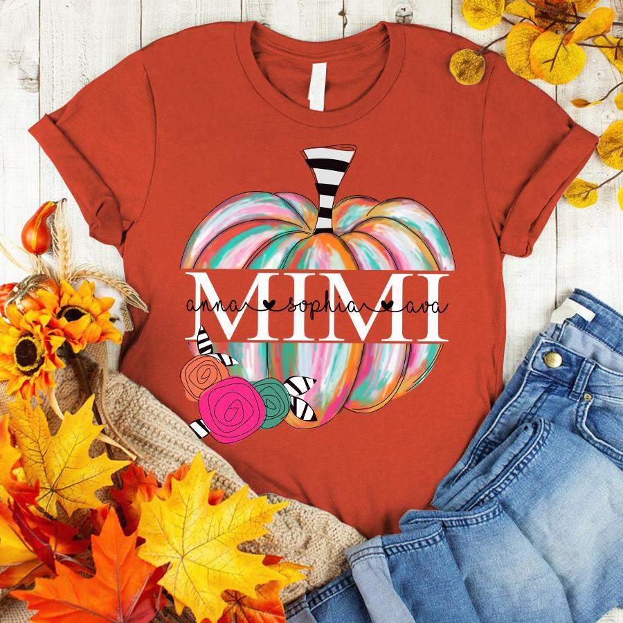 Namashops Personalized Mimi Pumpkin And Grandkids, Halloween Shirt