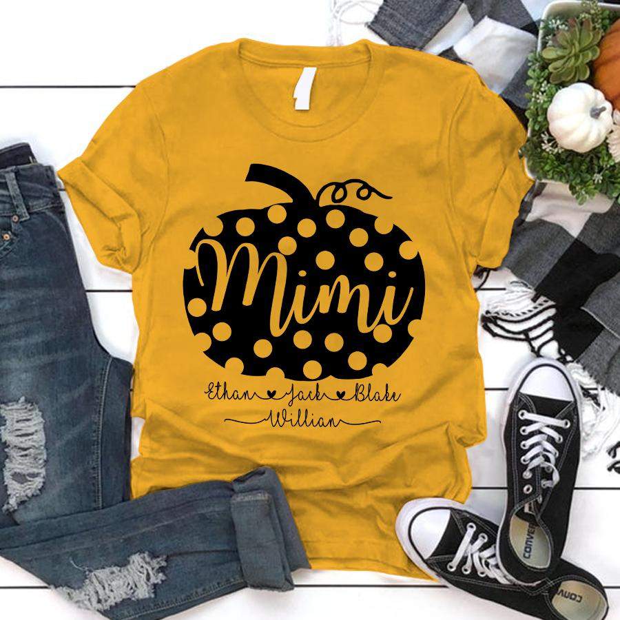 Namashops Personalized Mimi Pumpkin And Kids Names, Custom Names Shirt